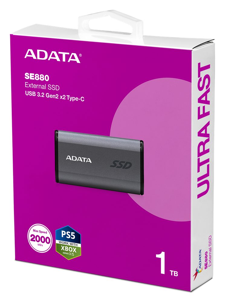 ADATA SE880 1TB External Solid State Drive - Titanium Gray - USB 3.2 Gen2 x2 Type-C - Transfer up to 2000MB/s - Supports New Generation Game Consoles (AELI-SE880-1TCGY)