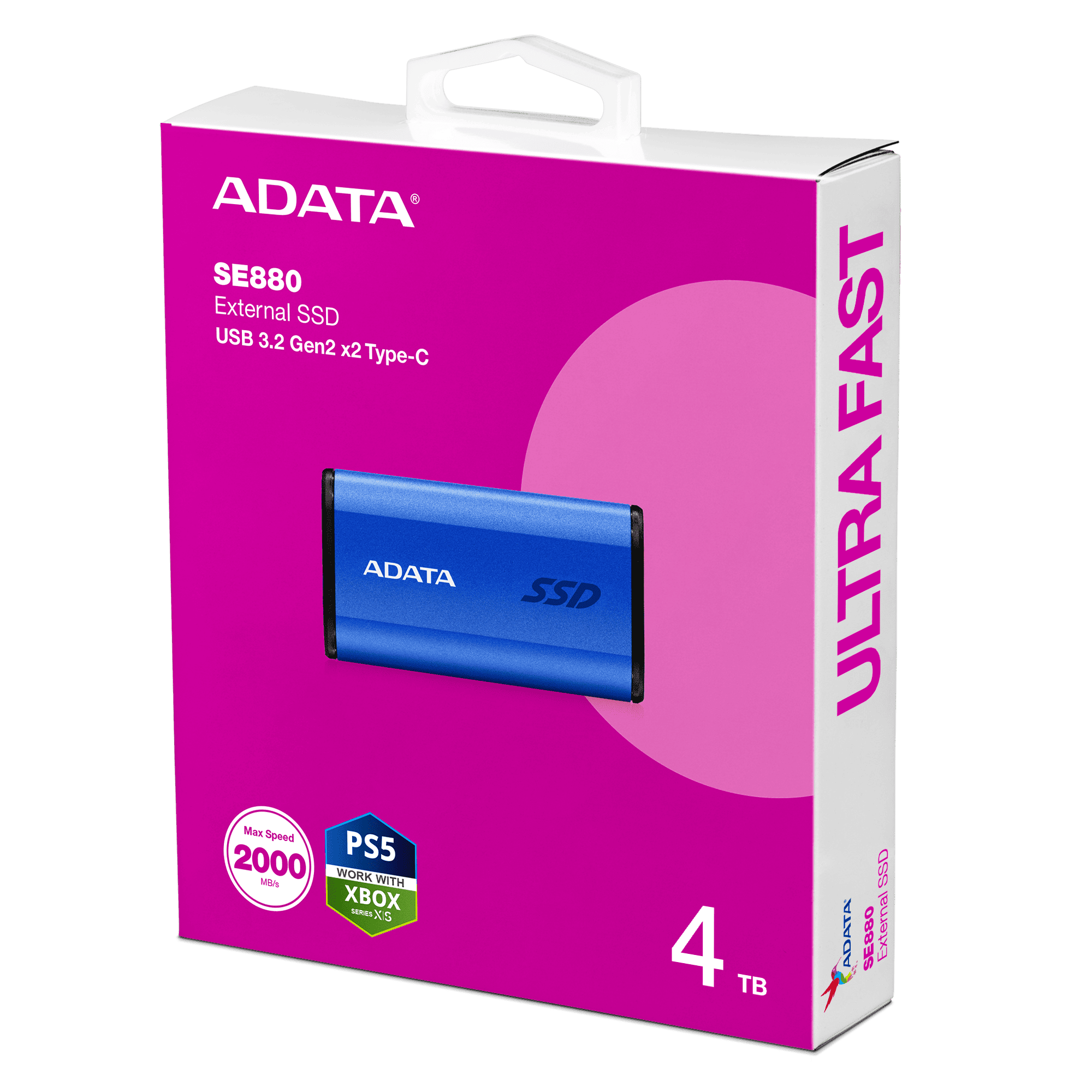 ADATA SE880 4TB External Solid State Drive - Blue - USB 3.2 Gen2 x2 Type-C - Transfer up to 2000MB/s - Supports New Generation Game Consoles (AELI-SE880-4TCBU)