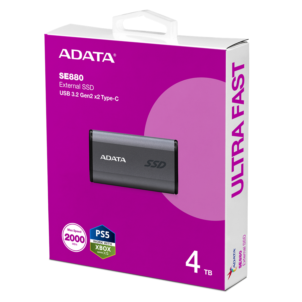 ADATA SE880 4TB External Solid State Drive - Titanium Gray - USB 3.2 Gen2 x2 Type-C - Transfer up to 2000MB/s - Supports New Generation Game Consoles (AELI-SE880-4TCGY)