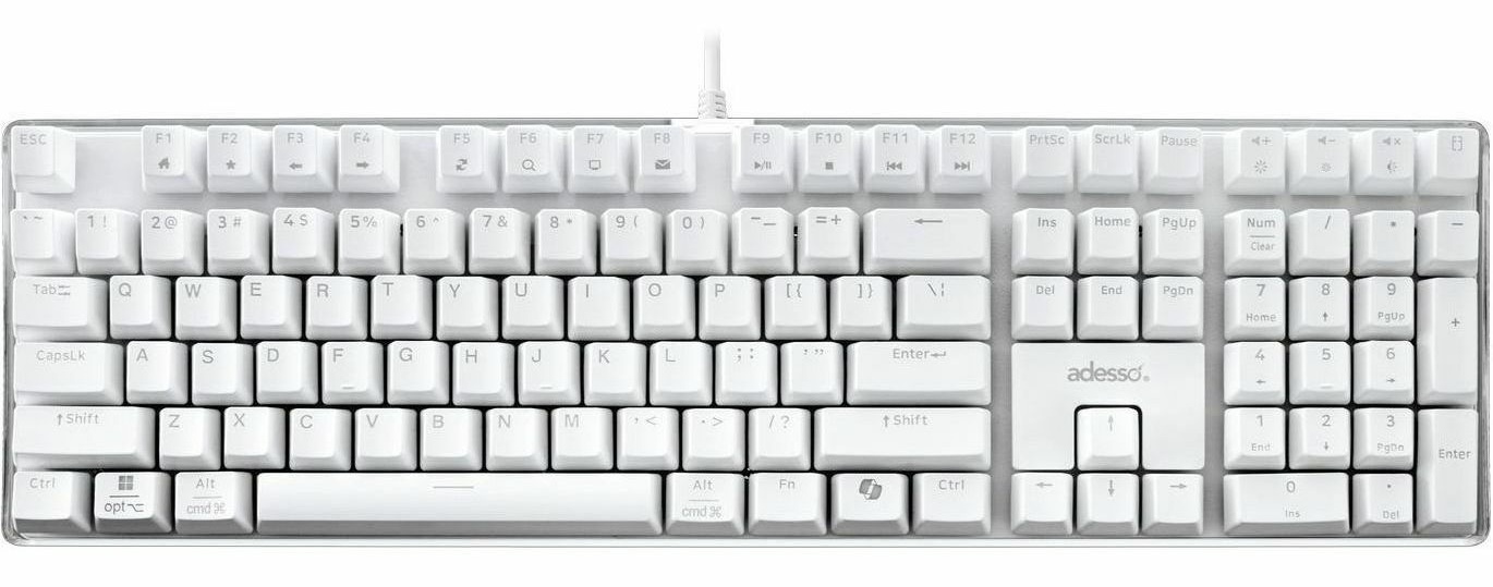 Adesso EasyTouch 680 Multi OS Illuminated Desktop Mechanical Keyboard with Copilot key (White) - Quiet Tactile Brown Switches - Wired USB-C Connector - Adjustable White LED Backlighting (AKB-680UW)