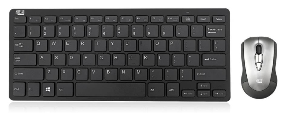 Adesso WKB-5100CB Wireless Presenter Air Mouse with Mini Keyboard - English (US) - 2.4GHz Wireless - Scissor-Switch Keys - Rechargeable Battery (WKB-5100CB)