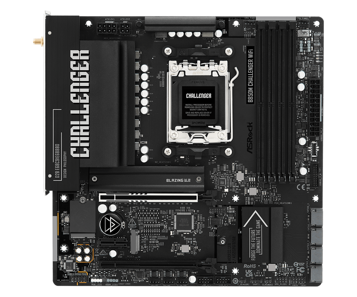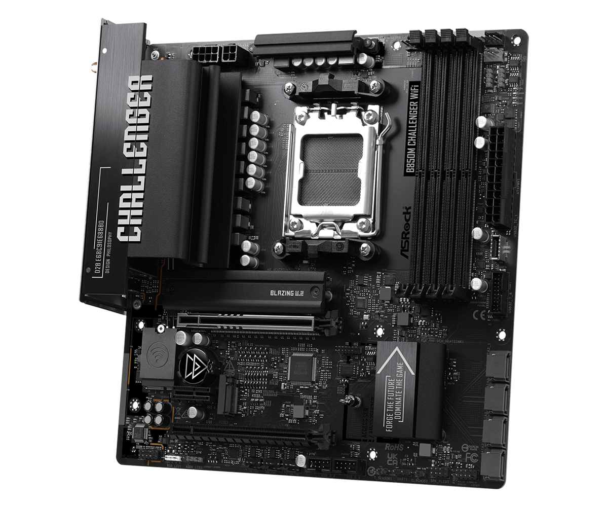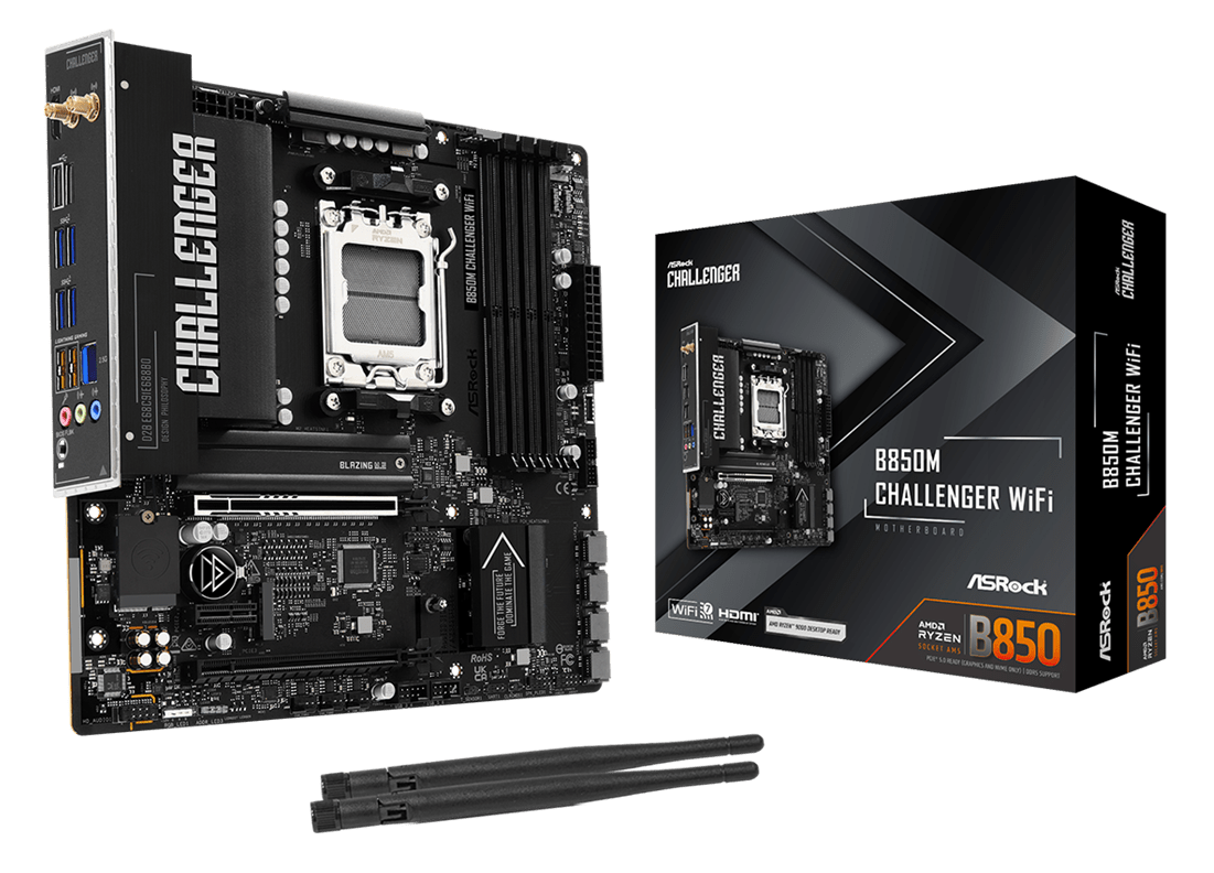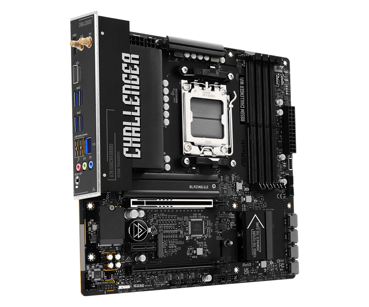 ASRock B850M Challenger WiFi Micro-ATX Motherboard - Socket AM5 - 1x PCIe 5.0 x16 - 1x PCIe 4.0 x4 - Support DDR5-8000+(OC) - 2x M.2 Slots - USB 3.2 Gen1 Type-A - HDMI 2.1 - Dragon 2.5Gb LAN - 802.11be 2x2 Wi-Fi 7 - Bluetooth 5.4 (B850MCHALLENGER WIFI)