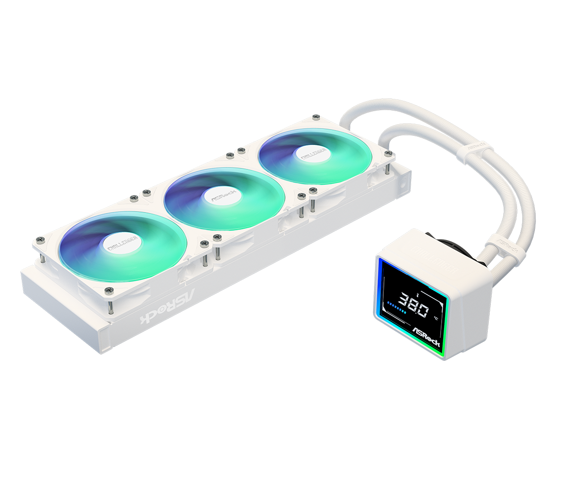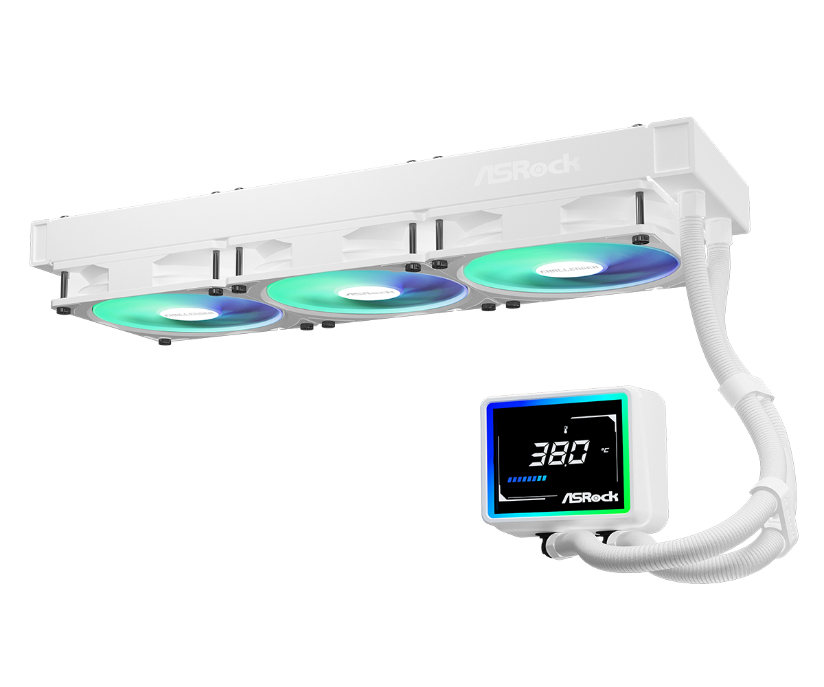 ASRock Challenger White 360 Digital 360mm AIO CPU Liquid Cooler - 3" Smart Digital Display - Dynamic ARGB Lighting Effect - 0dB Silent Cooling - Therm-X1 Thermal Grease (CHALLENGER WHITE 360)