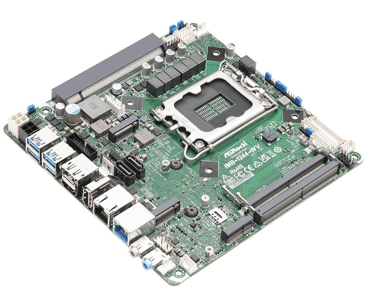 ASRock IMB-1244-WV Mini-ITX Industrial Motherboard - Intel Q670 Chipset - 2x 262-pin SO-DIMM DDR5 4800/5600 MHz - 1x Right Angle PCIe 4.0 x16 - 1x Intel 2.5 Gigabit LAN - 1x Intel Gigabit LAN - 2x HDMI 2.0b - DP 1.4a - LVDS - eDP 1.4b - TPM 2.0 onboard IC