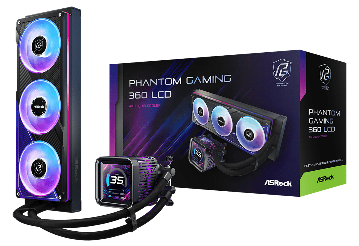 ASRock Phantom Gaming 360 LCD 360mm AIO CPU Liquid Cooler - 3.4” Full-Color LCD Display - Customizable Animations - 360° Halo ARGB Fan - 0dB Silent Cooling (PHANTOM GAMING 360 LCD)