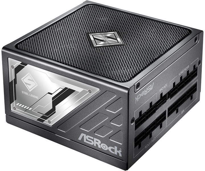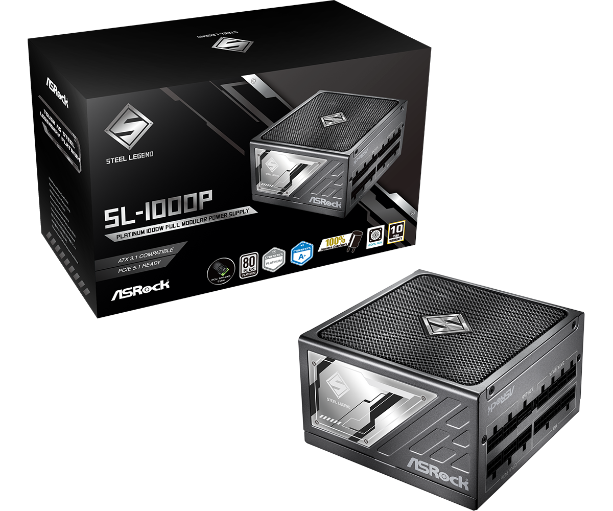 ASRock Steel Legend Series 1000W Full Modular Power Supply - 80 PLUS PLATINUM Certified - PCIe5.1 Ready - Native 12V-2x6 Connector - 135mm Striped Axial FDB Fan - Built-in 5V BOOST function - 2x PCIe 6+2pin Connectors - 1x PCIe 8pin Connector (SL-1000P)