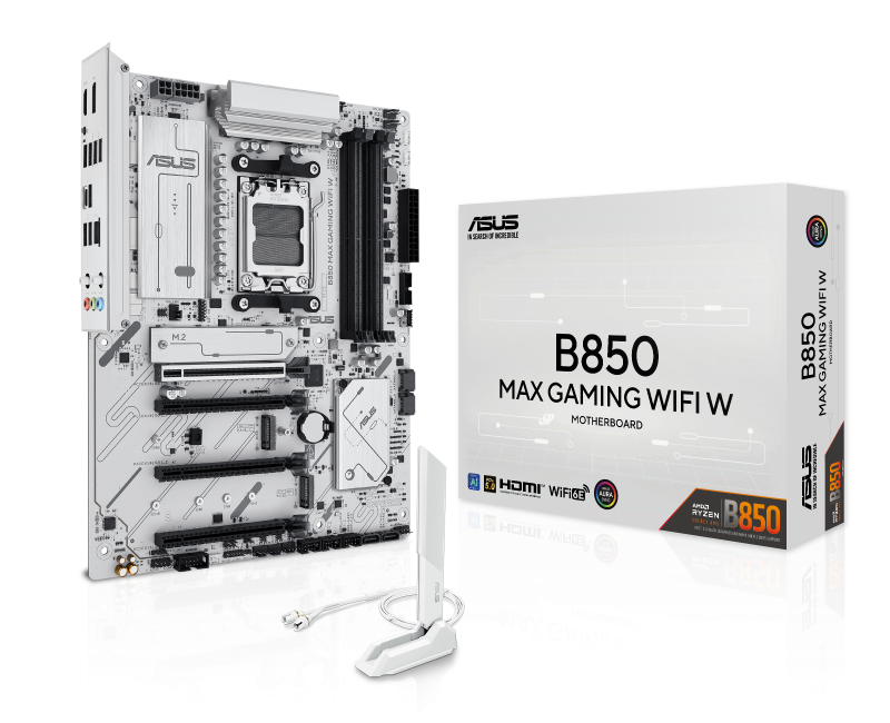 ASUS B850 MAX GAMING WIFI W ATX Motherboard - Socket AM5 - 1x PCIe 5.0 x16 - 1x PCIe 4.0 x4 - 2x PCIe 3.0 x1 -Support DDR5-8000+(OC) - 3x M.2 Slots - USB 10Gbps Type-C - HDMI 2.1 - DisplayPort 1.4 - Realtek 2.5Gb LAN - 802.11ax Wi-Fi 6E - Bluetooth 5.3
