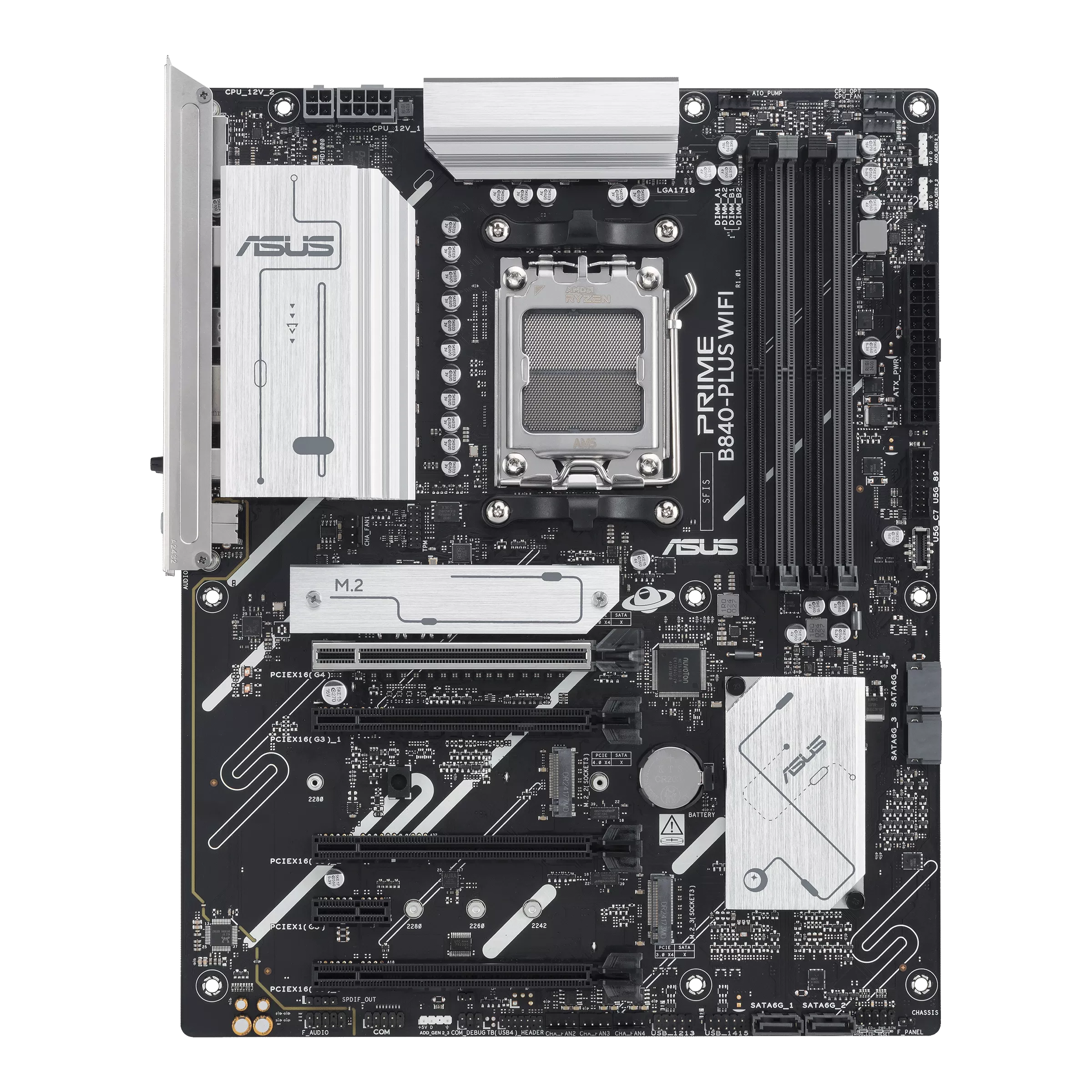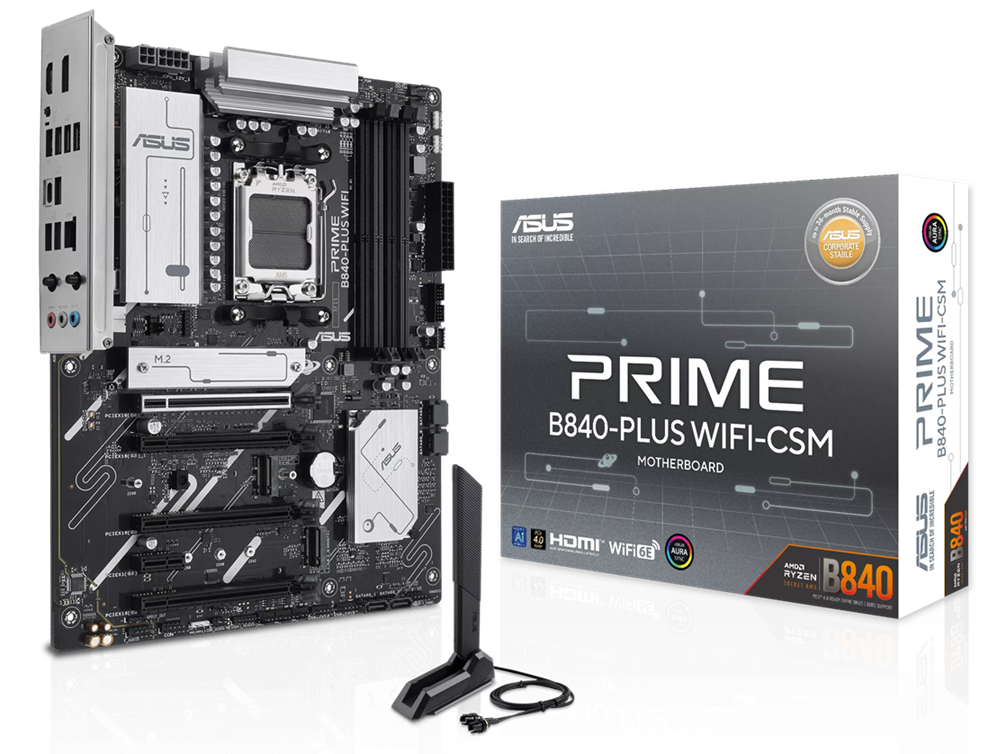 ASUS PRIME B840-PLUS WIFI-CSM ATX Motherboard - Socket AM5 - 1x PCIe 4.0 x16 - 3x PCIe 3.0 x16 - Support DDR5-7600+(OC) - 3x M.2 Slots - USB 10Gbps Type-C+A - HDMI 2.1 - DisplayPort 1.4 - Realtek 2.5Gb LAN - 802.11ax 2x2 Wi-Fi 6E - Bluetooth 5.3