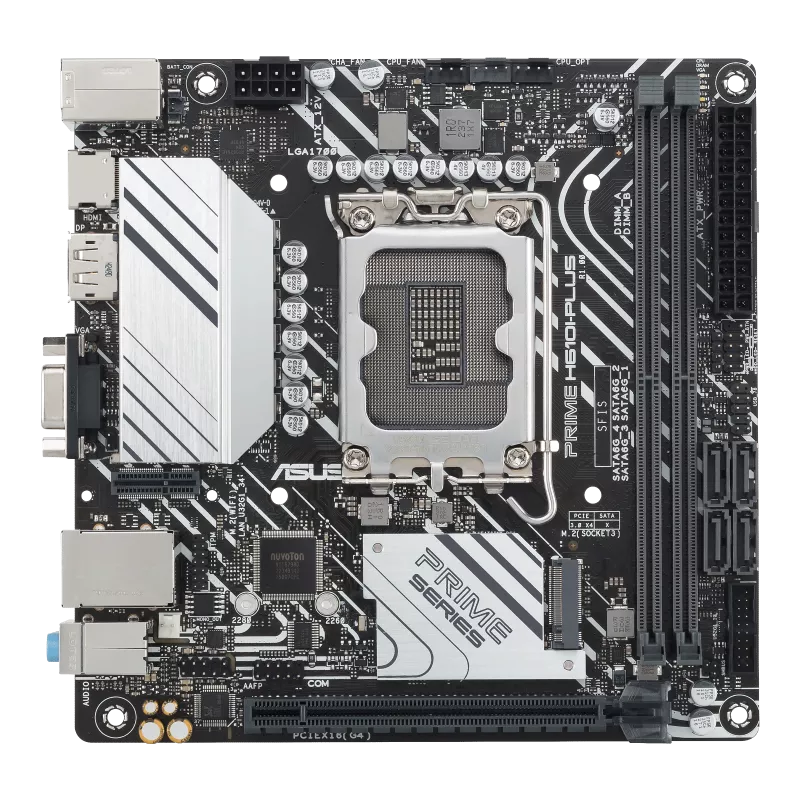 ASUS PRIME H610I-PLUS-CSM Mini-ITX Motherboard - Socket LGA 1700 - Supports DDR5-5600 - Intel H610 Chipset - 1x PCIe 4.0 x16 - M.2 Slot - USB 3.2 Gen1 Type-A - DisplayPort 1.4 - VGA - HDMI 2.1 - Intel GbE LAN