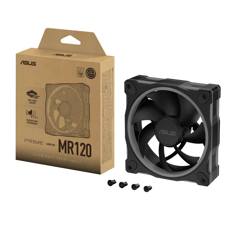 ASUS Prime MR120 ARGB Fan 120mm Computer Cooling Fan - Black Single Pack - Extra-thick 28mm Frame - Dual-sided Frame Lighting - PWM Control - Aura Sync (PRIME MR120 FAN ARGB BLACK)
