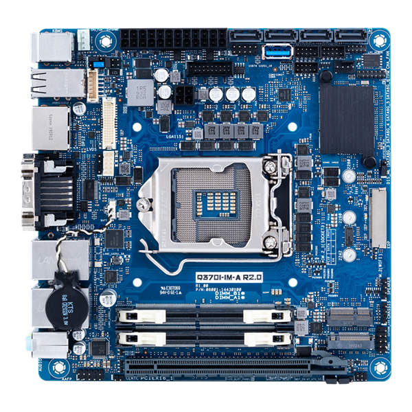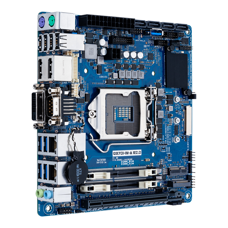 ASUS Q370I-IM-A R3.0 Industrial Mini-ITX Motherboard - Socket LGA 1151 - Intel Q370 Chipset - DDR4-2666 - 2x Intel GbE LAN - PCIe x16 slot - 2x M.2 sockets (E and M key) - 2x DisplayPort - DVI-D - LVDS - eDP