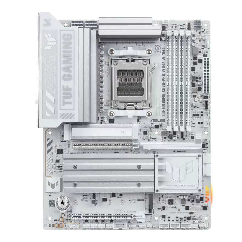 ASUS TUF GAMING X870-PRO WIFI7 W NEO ATX Motherboard - Socket AM5 - 2x PCIe 5.0 x16 - Support DDR5-8600+(OC) - 7x M.2 Slots - 2x USB4 Type-C (DP1.4a Alt mode) - 2x Realtek 10Gb LAN - Realtek 10Gb LAN - 802.11be 2x2 Wi-Fi 7 - Bluetooth 5.4