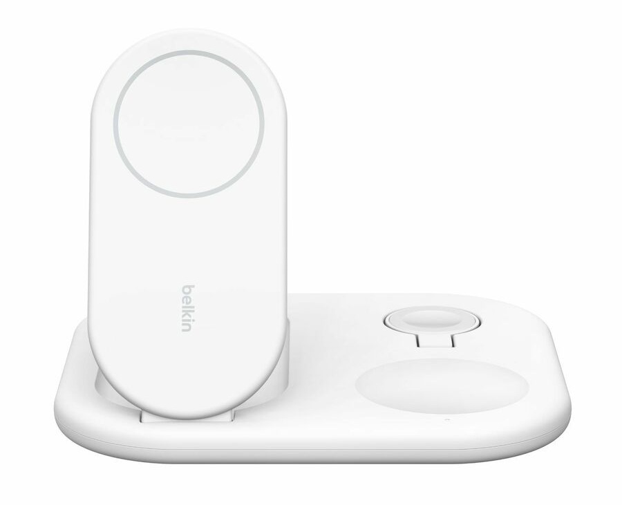 Belkin BoostCharge 3-in-1 Magnetic Foldable Wireless Charger with Qi2 15W - White - MagSafe Compatible - Compact Folding Stand Design (WIZ029ttWH)