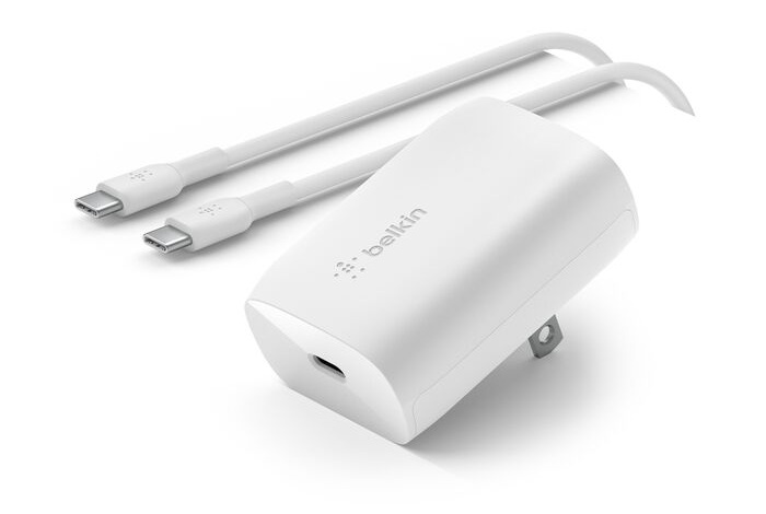 Belkin BoostCharge USB-C PD 3.0 PPS Wall Charger 30W + USB-C to USB-C Cable - Power Delivery 3.0 Certified - PPS Technology - Foldable Prongs (WCA005dq1MWH-B6)