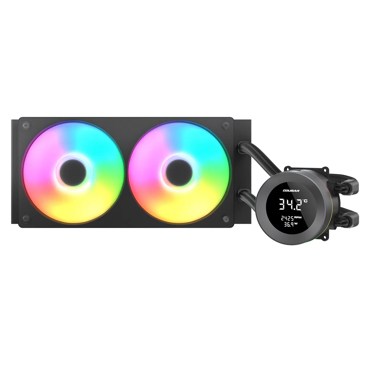 Cougar Poseidon Vistek ARGB 240 240mm CPU Liquid Cooler - Black - 1.9" Digital Display - Single-Frame PWM Fans - Rotatable Pump Head - Customizable RGB Lighting (3MPUA240.0001)