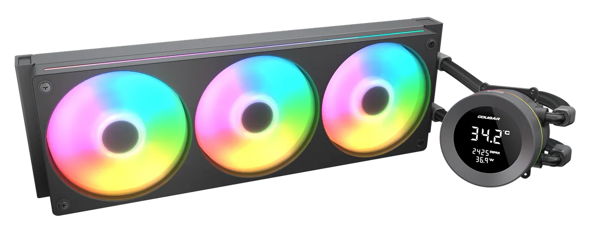 Cougar Poseidon Vistek ARGB 360 360mm CPU Liquid Cooler - Black - 1.9" Digital Display - Single-Frame PWM Fans - Rotatable Pump Head - Customizable RGB Lighting (3MPVA360.0001)