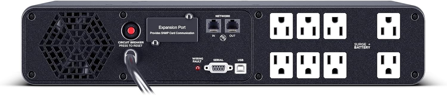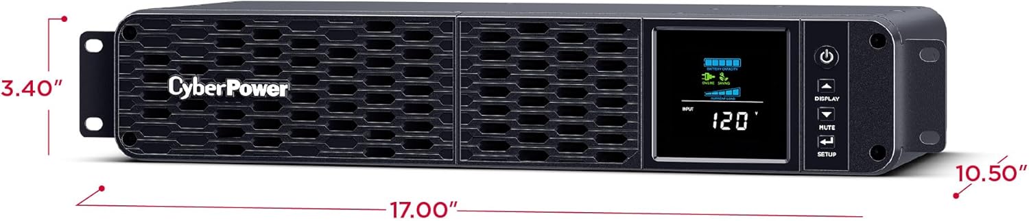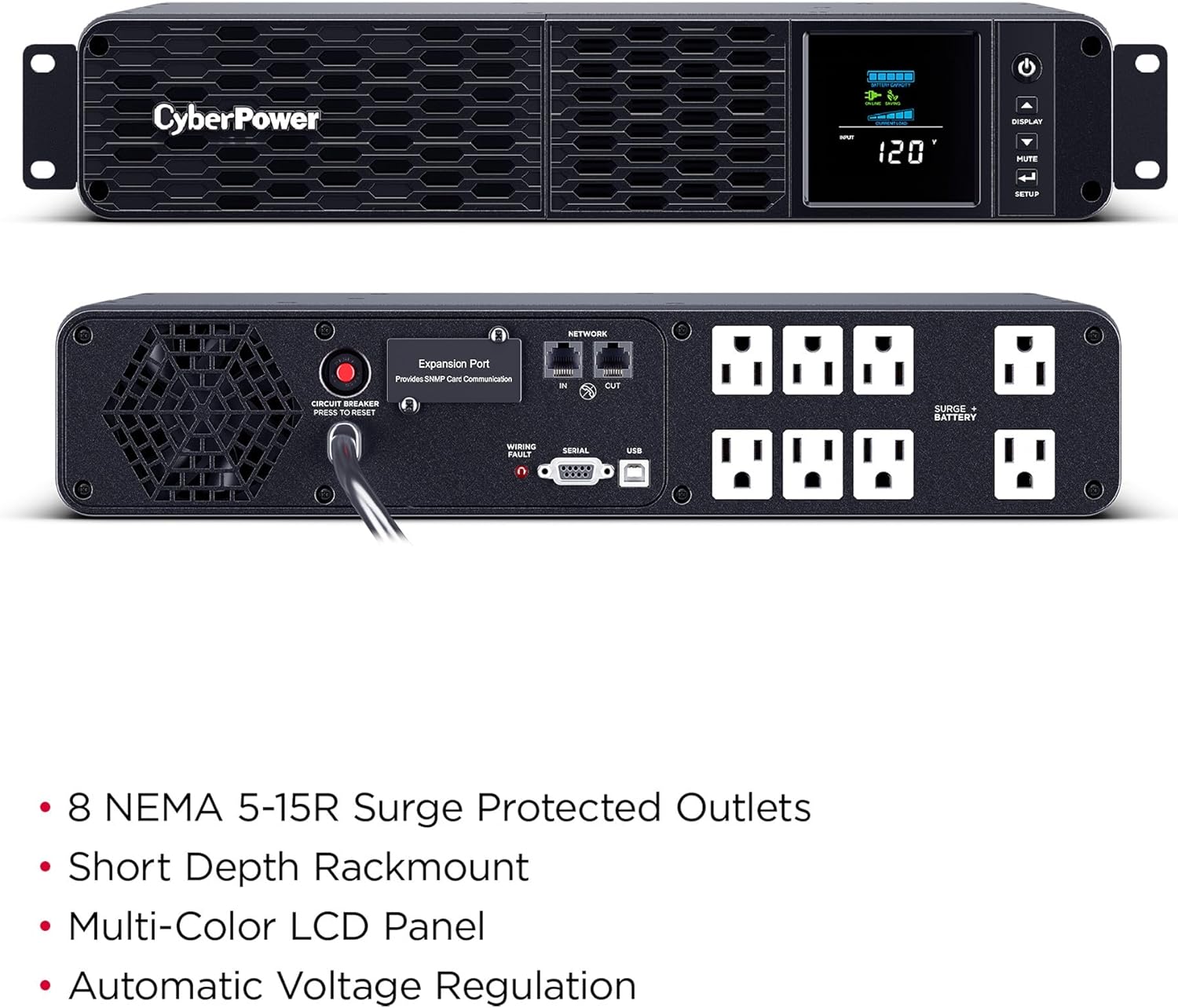 CyberPower CP1500PFCRM2U PFC Sinewave 1500VA/1000W 2U Rackmount UPS System - Sine Wave - 8x NEMA 5-15R (8 Surge + Battery Backup) - 120 VAC ± 5% - Line Interactive - HID Compliant USB Port (CP1500PFCRM2U)