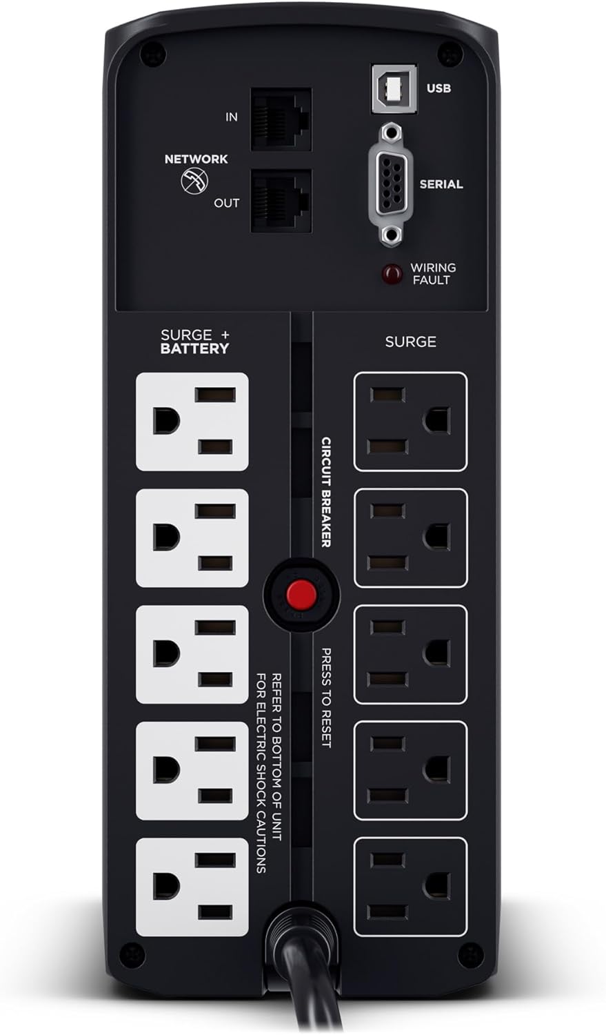 CyberPower CP850PFCLCD PFC Sinewave 850VA/510W Mini-Tower UPS System - Sine Wave - 10x NEMA 5-15R - Line Interactive - RJ45 Network Protection - USB & Serial Management Ports (CP850PFCLCD)