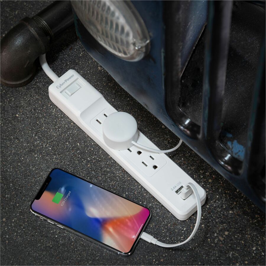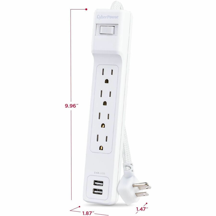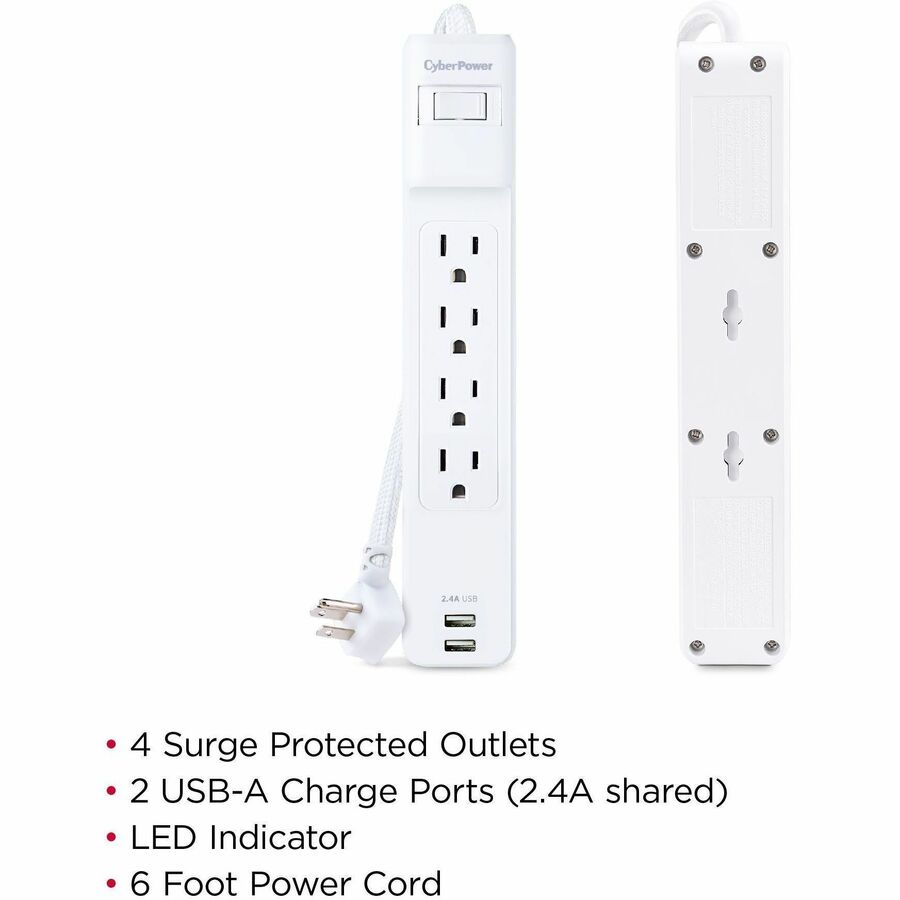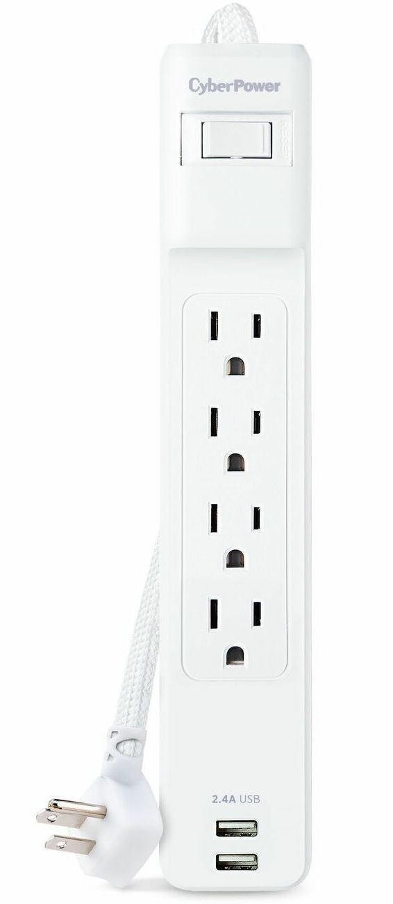 CyberPower Home Office P406U 4 Outlet Surge Protector - 4x NEMA 5-15R - 500 J Surge Suppression - 2x USB-A Charging Ports (2.4A shared) - 6 ft Braided Cord (P406U)