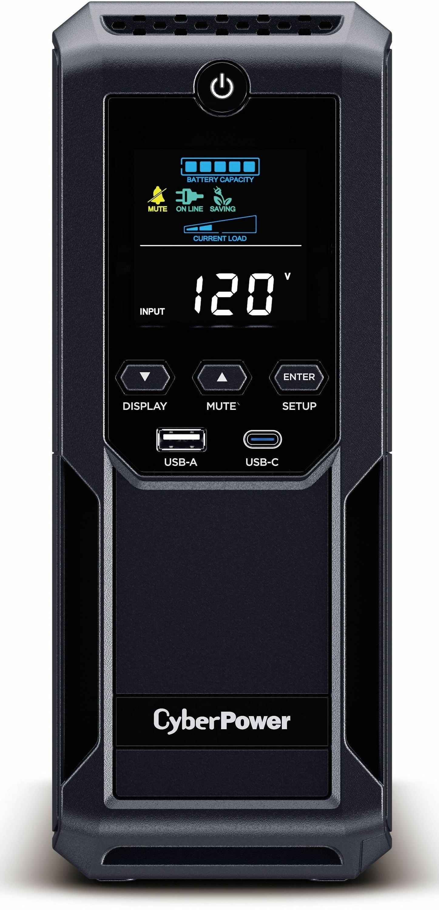 CyberPower Intelligent LCD BRG1500AVRLCD2 1500VA/900W Mini-Tower UPS System - Simulated Sine Wave - 12x NEMA 5-15R Outlets (6 surge, 6 surge + battery backup) - Line Interactive - USB Charge Ports - USB & Serial Management Ports (BRG1500AVRLCD2)