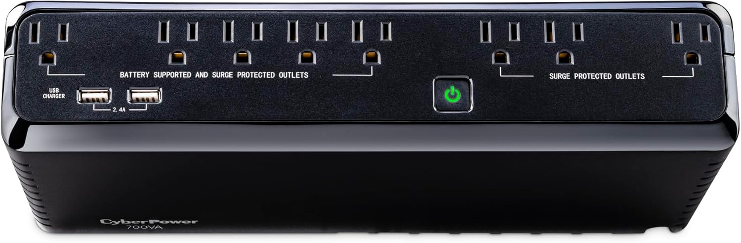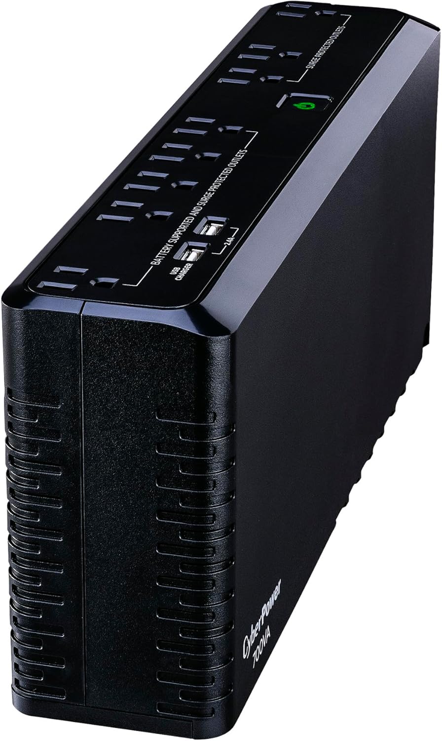 CyberPower SL700U Standby 700VA/370W Compact UPS System - Simulated Sine Wave - 8x NEMA 5-15R Outlets - 2x USB-A 2.4A Charging Ports (shared) - USB Management Port (SL700U)