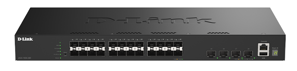 DL-Link DGS-1530-28S 24-Port Gigabit Stackable Smart Managed Fiber Switch - 4 Ports 10G SFP+ for Uplink - ZTP (Zero-Touch Provisioning) - 6kV Surge Protection - Optical Fiber - 1U - Rack-mountable (DGS-1530-28S)