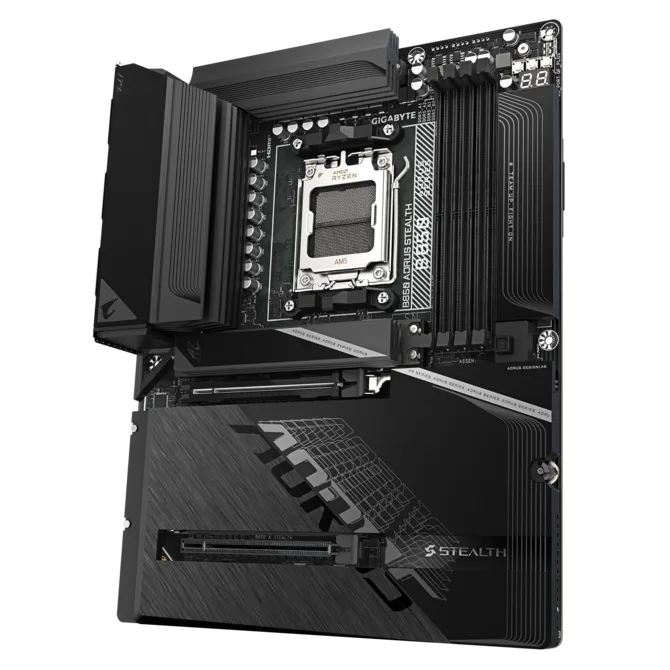 GIGABYTE B850 AORUS STEALTH ATX Motherboard - Socket AM5 - 1x PCIe 5.0 x16 - 1x PCIe 4.0 x4 - Support DDR5-8200(OC) - 4x M.2 Slots - USB 3.2 Gen 2 Type-C - HDMI 2.1 - Realtek 5GbE LAN - 802.11be Wi-Fi 7 - Bluetooth 5.4