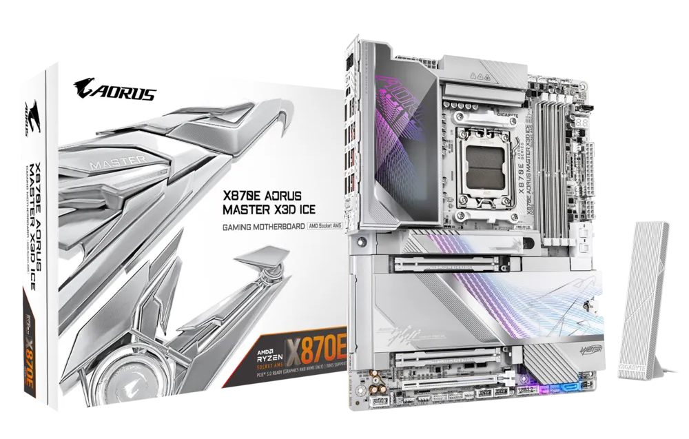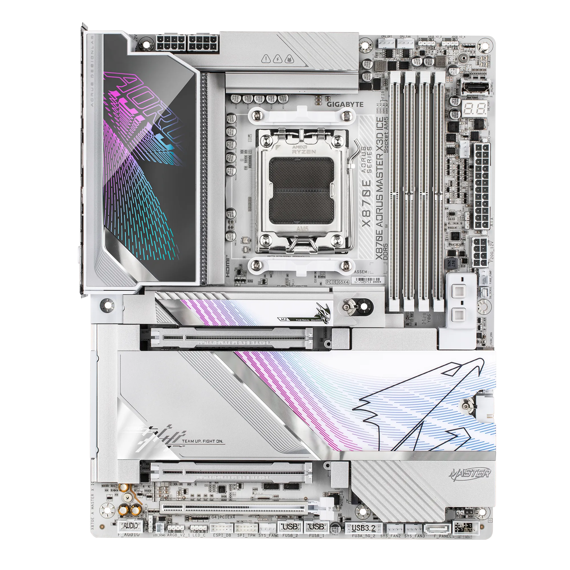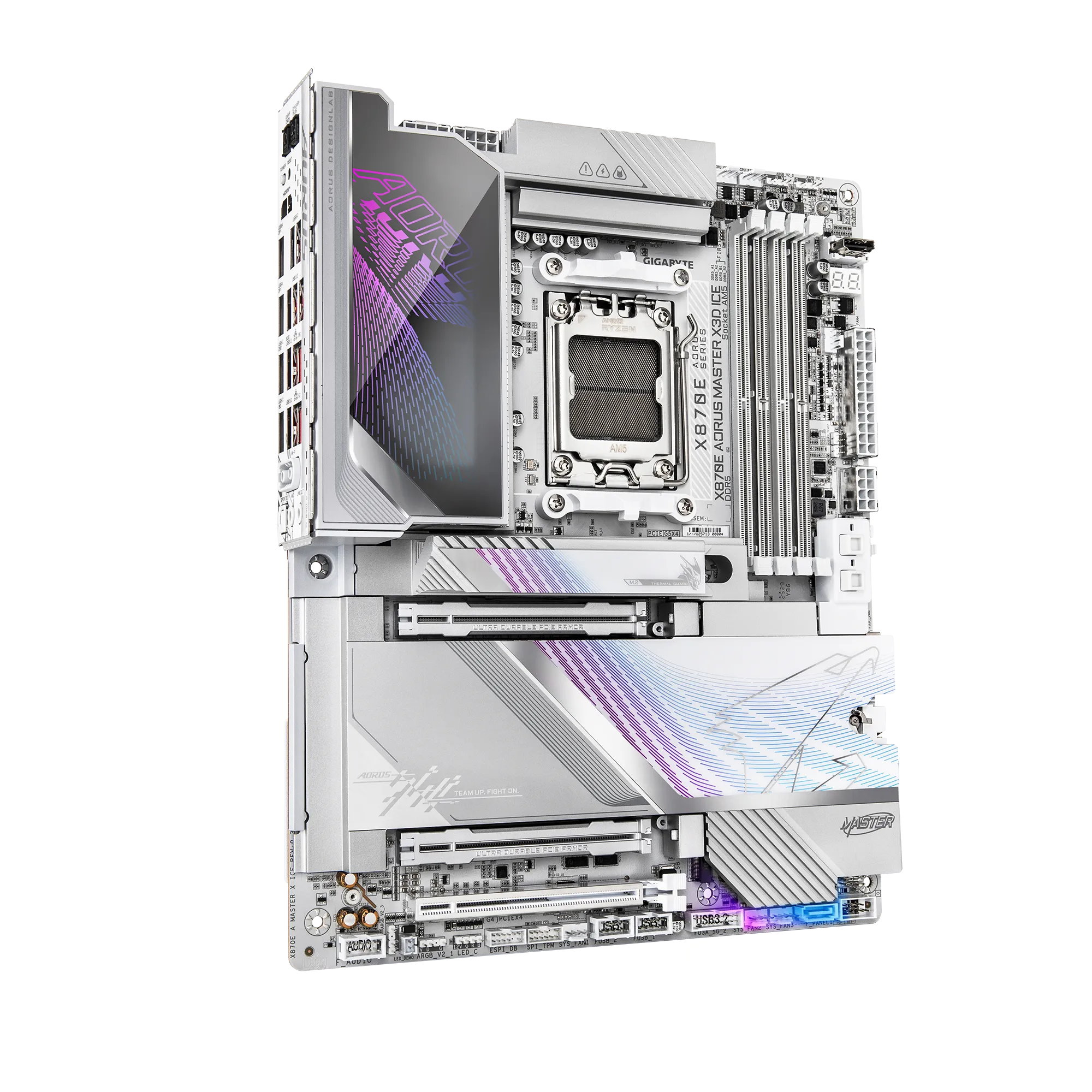 GIGABYTE X870E AORUS MASTER X3D ICE ATX Motherboard - Socket AM5 - 2x PCIe 5.0 x16 - 1x PCIe 4.0 x4 - Support DDR5-9000(OC) - 5x M.2 Slots - 2x USB4 Type-C with DP-Alt - HDMI 2.1 - 5GbE LAN - 10GbE LAN - 802.11be Wi-Fi 7 (X870E A MASTER X ICE)