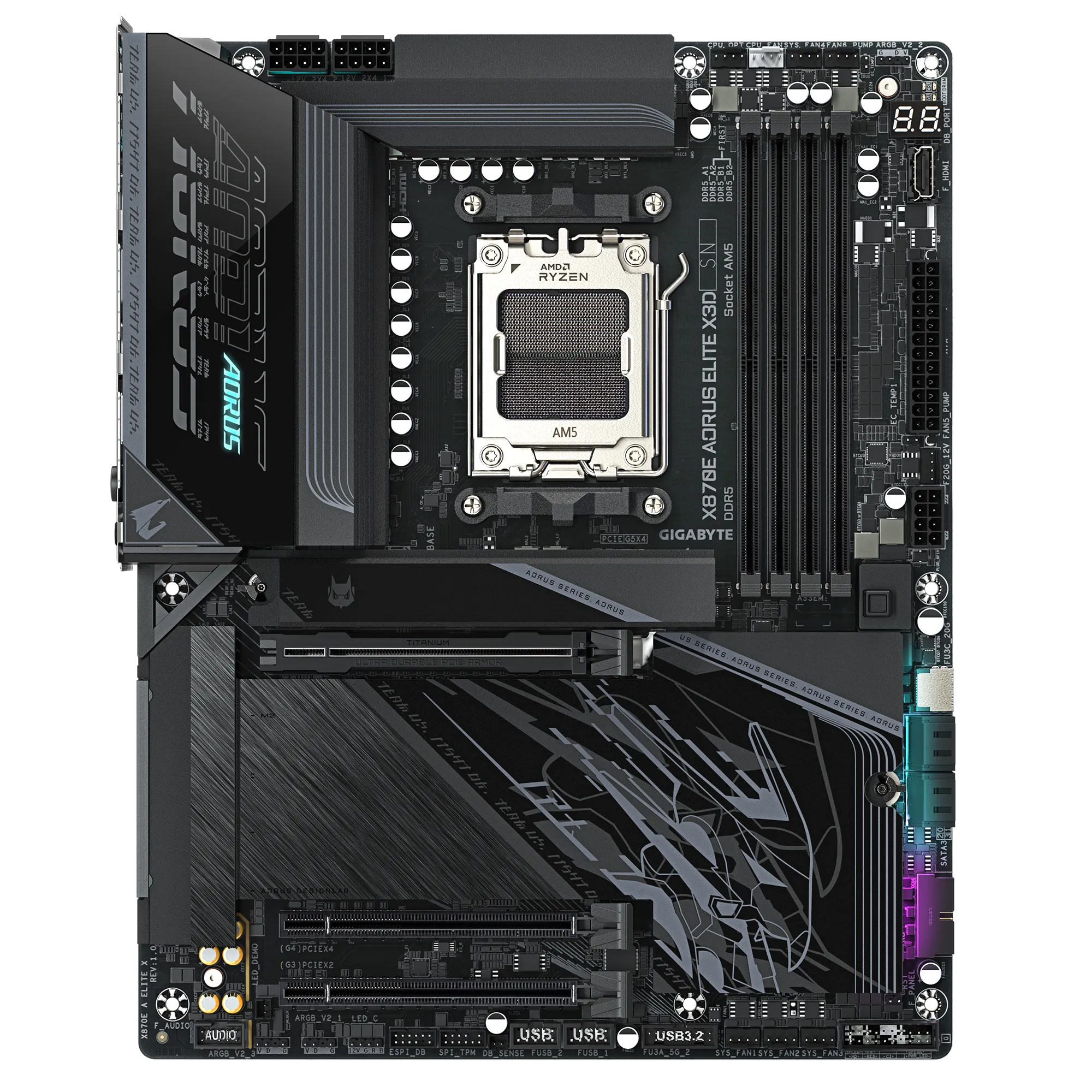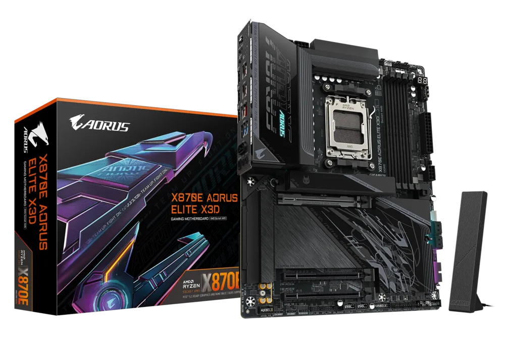 GIGAYBTE X870E AORUS ELITE X3D ATX Motherboard - Socket AM5 - 1x PCIe 5.0 x16 - 1x PCIe 4.0 x4 - Support DDR5-9000(OC) - 4x M.2 Slots - 2x USB4 Type-C with DP-Alt - HDMI 2.1 - Realtek 5Gb LAN - 802.11be Wi-Fi 7 - Bluetooth 5.4