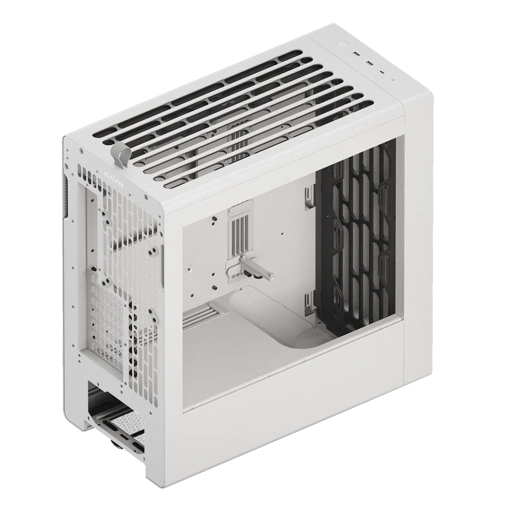 HAVN BF 360 ATX Mid-Tower Computer Case - White - GPU Air Guide Ramp - Semi Open Frame Design - Adjustable GPU Support Bracket - Stone-Textured Front Panel - 1x USB 3.2 Gen 2 Type-C - 2x USB 3.2 Gen 1 Type-A - 3.5mm Audio Jack (HVN-CA-BF360-01)