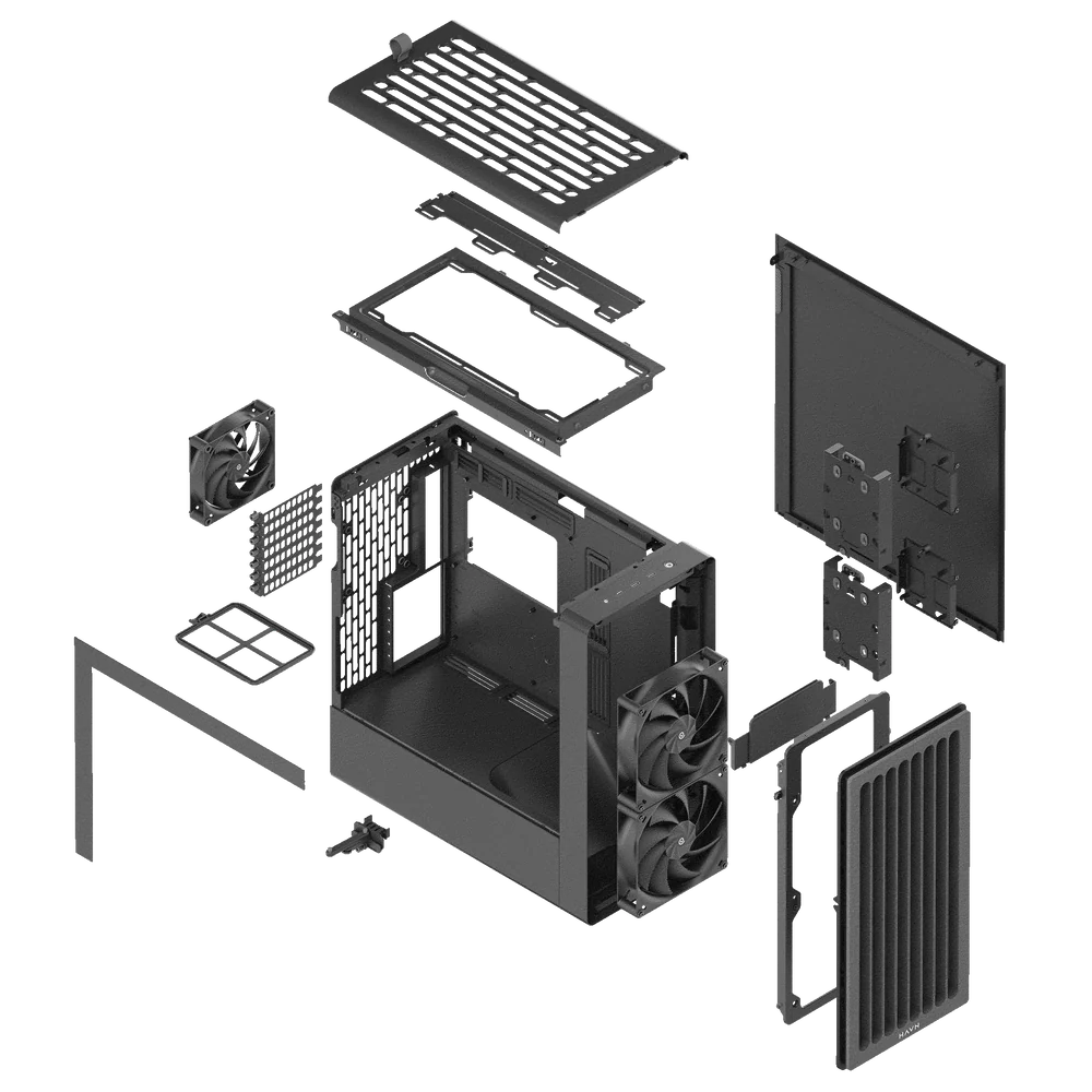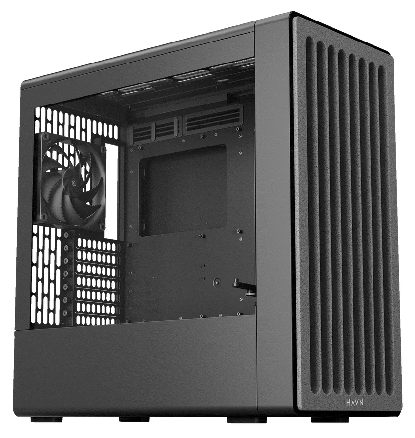 HAVN BF 360 Flow ATX Mid-Tower Computer Case - Black - GPU Air Guide Ramp - Dual 180mm H18 Front Fans - Adjustable GPU Support Bracket - Stone-Textured Front Panel - 1x USB 3.2 Gen 2 Type-C - 2x USB 3.2 Gen 1 Type-A - 3.5mm Audio Jack (HVN-CA-BF360-04)