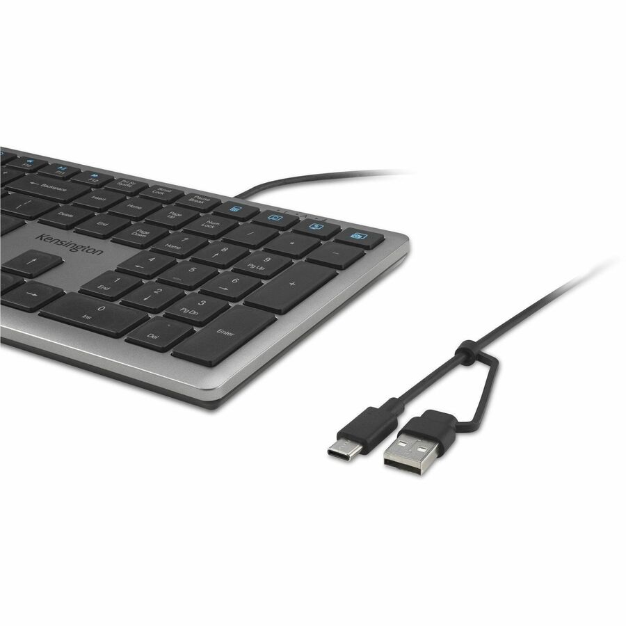 Kensington KB515 EQ Wired Keyboard - Scissor-Switch Keys - 16 Programmable Keys - AI Copilot Key - Wired USB-C with Tethered USB-A Adapter (K75410NA)