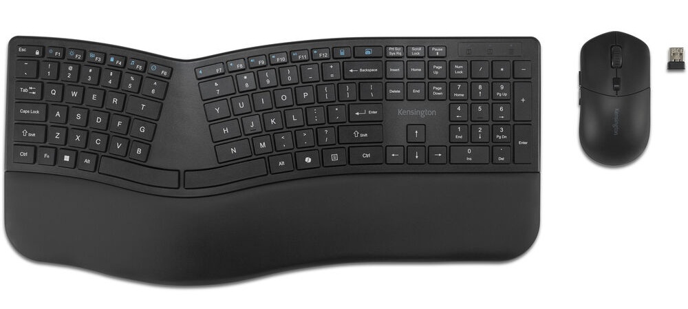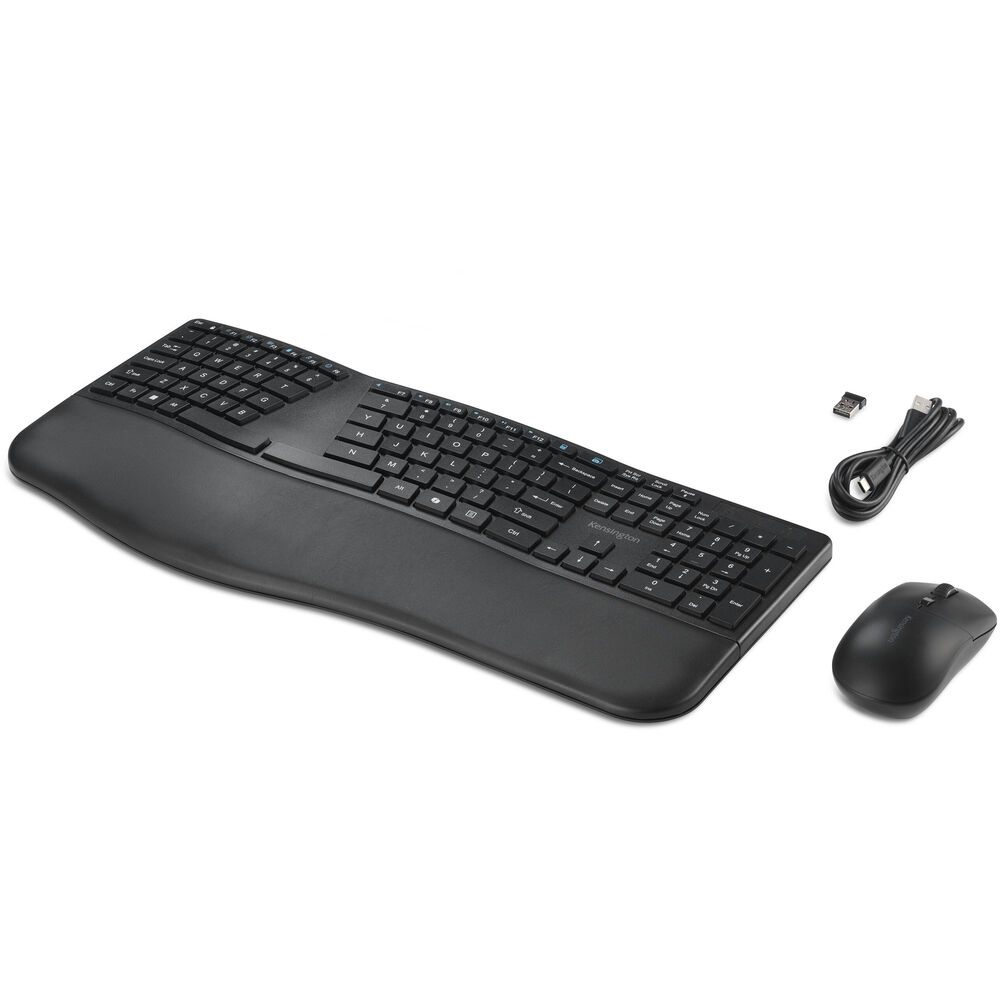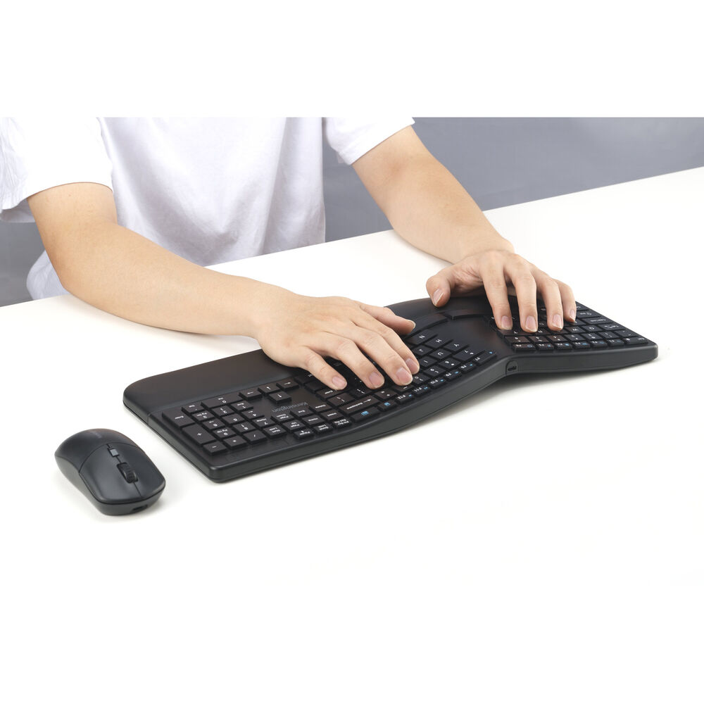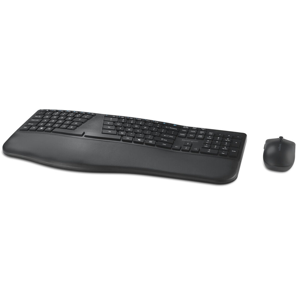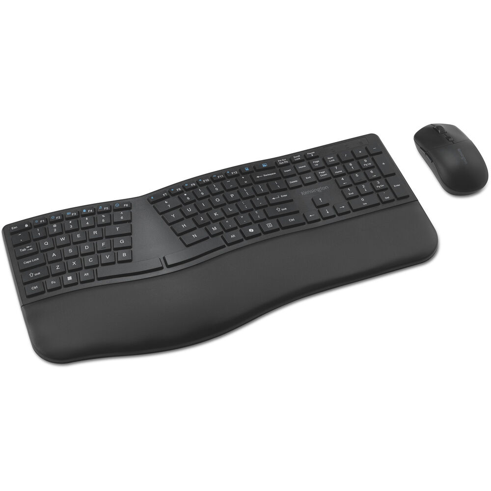 Kensington Pro Fit Ergo KM680 EQ Rechargeable Desktop Keyboard & Mouse Set - Bluetooth 5.4 & RF 2.4GHz Connectivity - 2400 dpi Optical Sensor - Integrated Wrist Rest - 2.4GHz Nano USB Receiver (K72486NA)