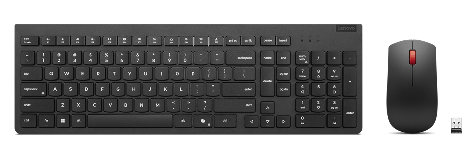 Lenovo Essential Wireless Combo Keyboard & Mouse Gen2 Black - Canadian English - 2.4GHz RF Wireless - Low-Profile 2.5-zone Layout - LED Indicator - Adjustable Tilt Leg - Spill-resistant Keyboard Design (4X31R64499)