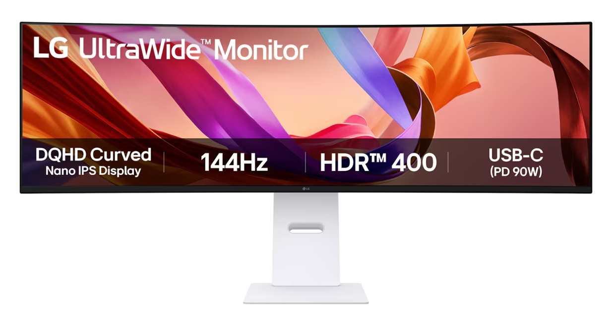 LG UltraWide 49U950A-W 49" Dual QHD Curved Nano IPS Monitor - 5120x1440 - 144Hz Refresh Rate - 1ms MBR - HDR 400 - sRGB 98% (Typ.) - Factory Color Calibrated - Built-in 10W Stereo Speakers - KVM Switch - USB-C (PD 90W) - 2x HDMI - DisplayPort
