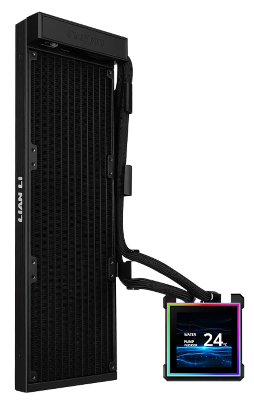 Lian Li HydroShift II LCD-S 360 Fanless 360mm Liquid CPU Cooler - Black - 3.4” IPS LCD display - Magnetic Hot-Swap LCD Mount - 3 Control Modes - Side-Mounted Tubing Layout (HS2LCDS36NB)