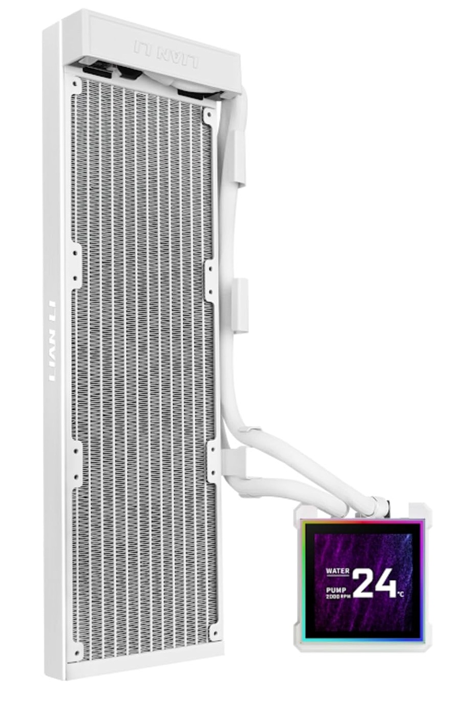 Lian Li HydroShift II LCD-S 360 Fanless 360mm Liquid CPU Cooler - White - 3.4” IPS LCD display - Magnetic Hot-Swap LCD Mount - 3 Control Modes - Side-Mounted Tubing Layout (HS2LCDS36NW)