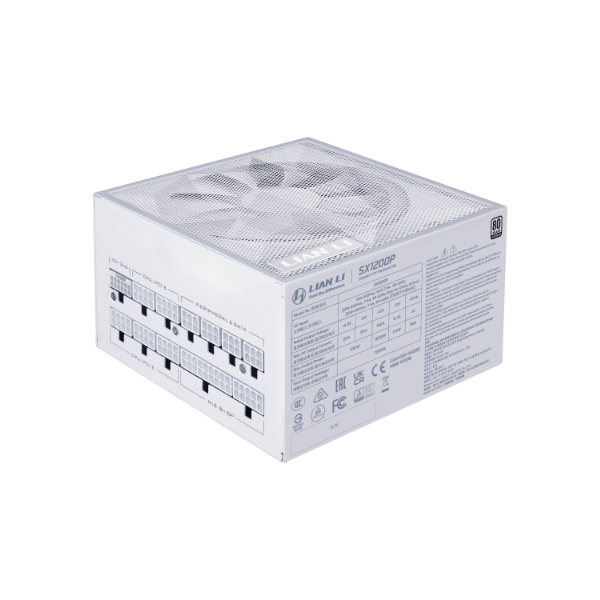 Lian Li SX Platinum SX1200P 1200W Full Modular ATX Power Supply - White - 80 PLUS Platinum Certified - ATX 3.1 & PCIE 5.1 Ready - 120mm FDB Fan - 12V-2×6 Cable - 5x PCIe 6+2-pin Connectors (SX1200P.W)
