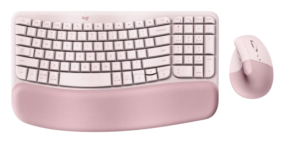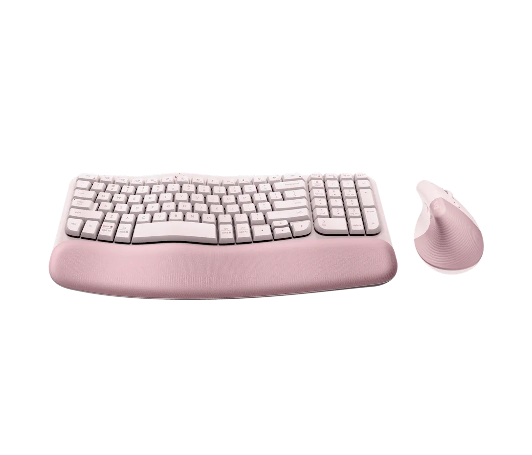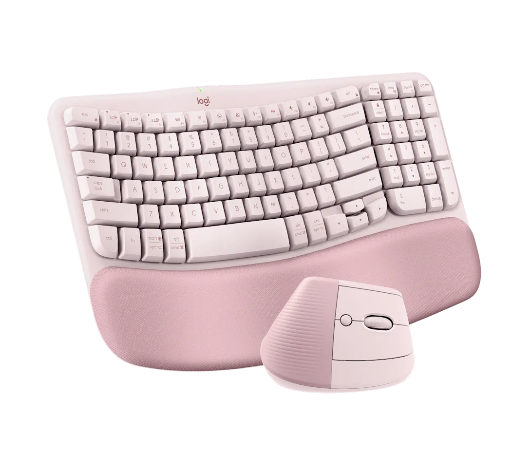 Logitech Wave Keys & Lift Keyboard and Vertical Mouse Combo - Rose English US (QWERTY) - Cushioned Palm Rest - Easy-Switch - Bluetooth LE - Logi Bolt Wireless 2.4GHz - for Multi-OS - Logi Bolt USB Receiver Included (920-013612)
