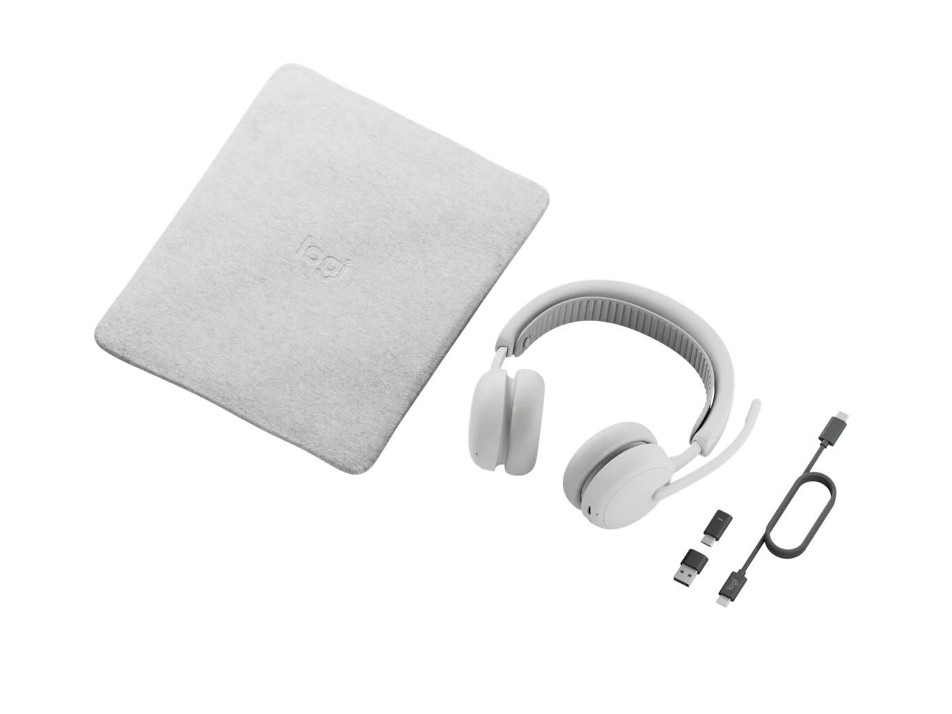 Logitech Zone Wireless 2 ES for Business ANC Headset - Off-White Teams Version with Receiver - Bluetooth 5.3 - Audio over USB - Adaptive Hybrid Active Noise Cancellation - 40mm Speakers - Dual Noise-Canceling Microphones (981-001518)