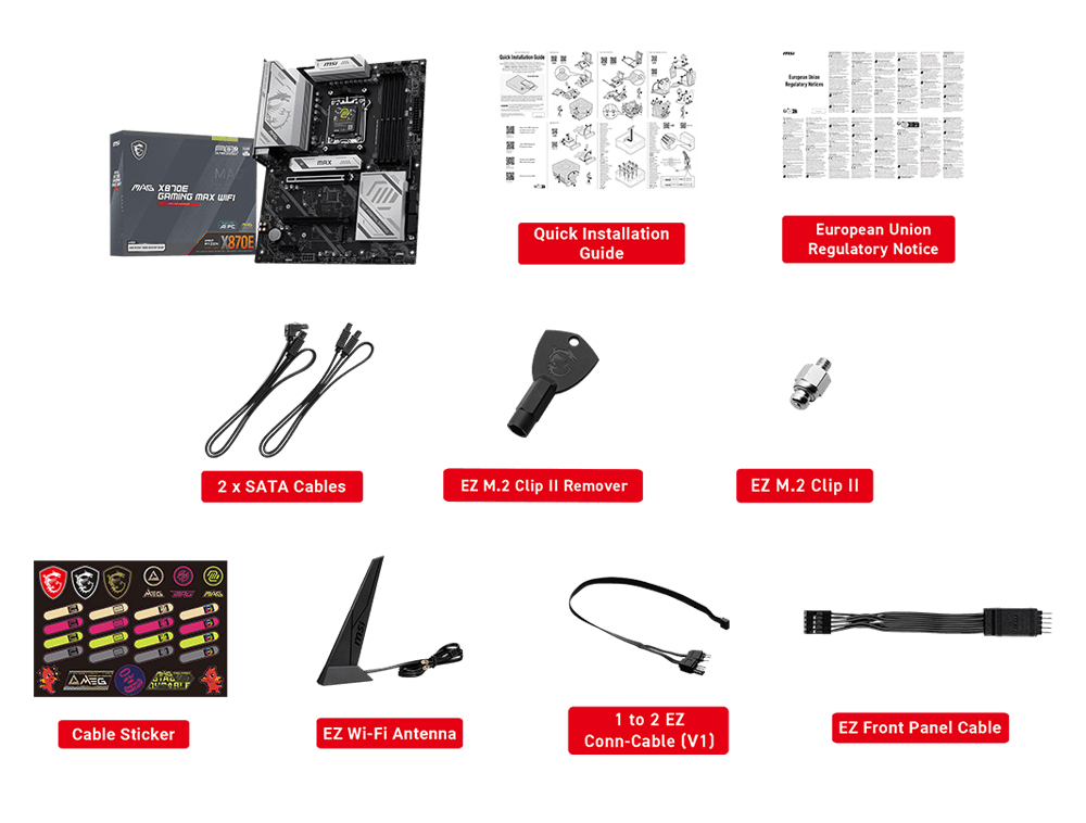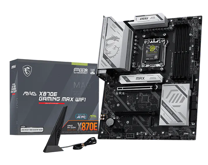 MAG X870E GAMING MAX WIFI ATX Motherboard - Socket AM5 - 1x PCIe 5.0 x16 - 1x PCIe 4.0 x4 - Support DDR5-8200(OC) - 3x M.2 Slots - USB4 Type-C (DP1.4 Alt mode) - HDMI 2.1 - Realtek 5Gb LAN - 802.11be 2x2 Wi-Fi 7 - Bluetooth 5.4 (MAXX870EGAMAXWIFI)