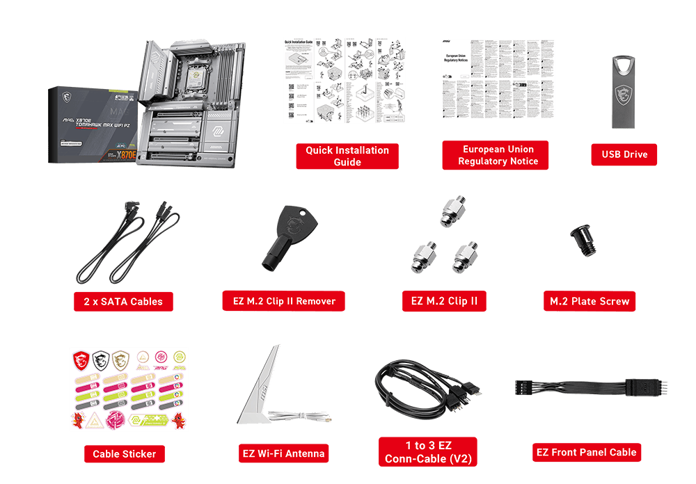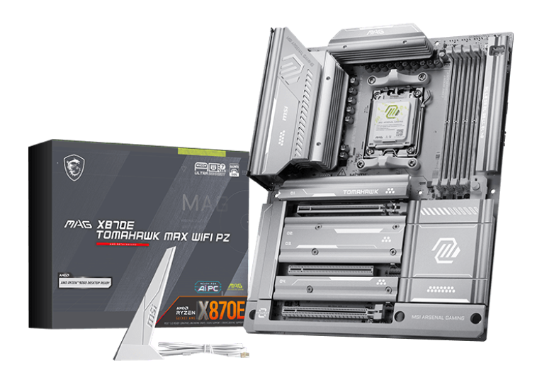 MAG X870E TOMAHAWK MAX WIFI PZ ATX Motherboard - Socket AM5 - 1x PCIe 5.0 x16 - 1x PCIe 4.0 x4 - Support DDR5-8400(OC) - 4x M.2 Slots - 2x USB4 Type-C (DP Alt mode) - HDMI 2.1 - Realtek 5G LAN - 802.11be Wi-Fi 7 - Bluetooth 5.4 (X870ETMAHAWKWIFPZ)