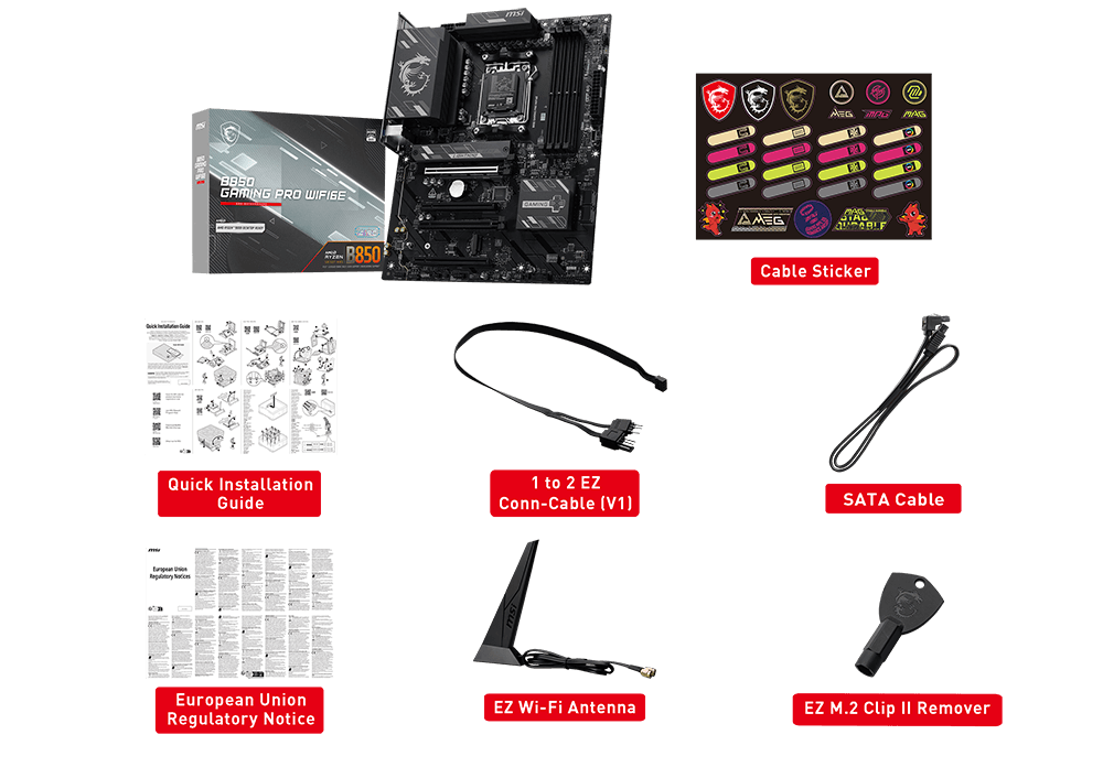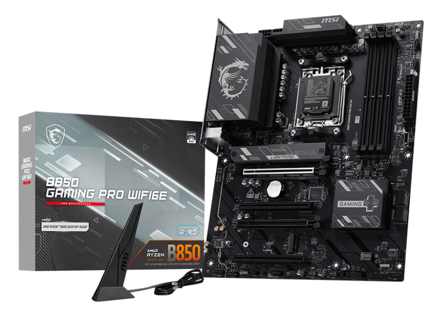 MSI B850 GAMING PRO WIFI6E ATX Motherboard - Socket AM5 - 1x PCIe 4.0 x16 - 2x PCIe 3.0 x1 - Support DDR5-8200+(OC) - 2x M.2 Slots - USB 10Gbps Type-C - HDMI 2.1 - DisplayPort 1.4 - 2.5Gb LAN - 802.11ax Wi-Fi 6E - Bluetooth 5.3 (PROB850GAMWIFI6E)