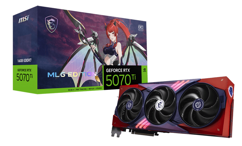 MSI GeForce RTX 5070 Ti 16G MLG EDITION OC Graphics Card - 16GB 256-bit GDDR7 - 2580 MHz Extreme Performance Core Clock - PCI Express 5.0 - HDMI 2.1b - 3x DisplayPort 2.1b - Bundled Support Stand - MLG 10-Keycaps Set (G507T-16MEC)