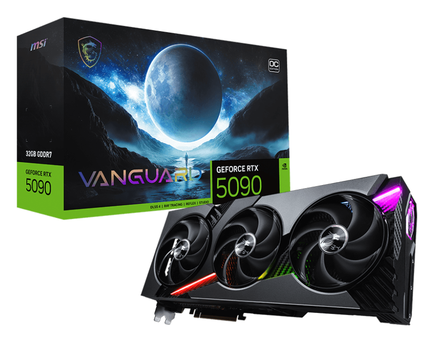 MSI GeForce RTX 5090 32G VANGUARD OC Graphics Card - 32GB 512-bit GDDR7 - 2497 MHz Extreme Performance Core Clock - PCI Express 5.0 - HDMI 2.1b - 3x DisplayPort 2.1b - Metal Backplate - Bundled Support Stand (G5090-32VGC)
