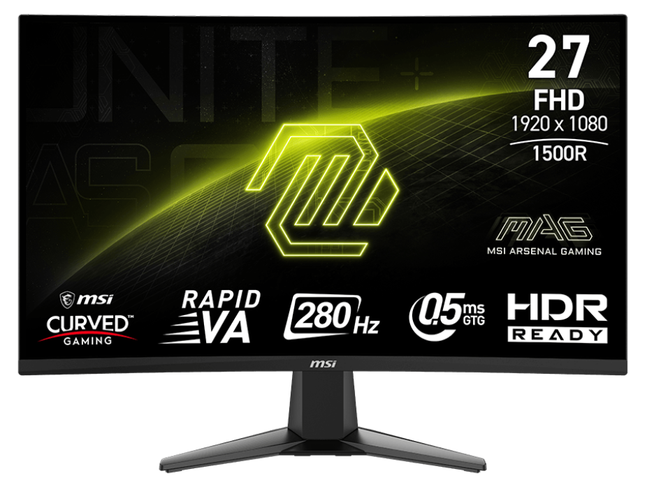 MSI MAG 276CXF 27" VA Curved Gaming Monitor - 1920x1080 - 1500R Curvature - 280Hz Refresh Rate - 0.5ms GTG - Adaptive-Sync - HDR Ready - DisplayPort 1.4a - 2x HDMI 2.0b - Headphone-out (MAG276CXF)