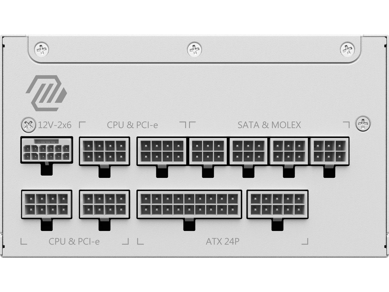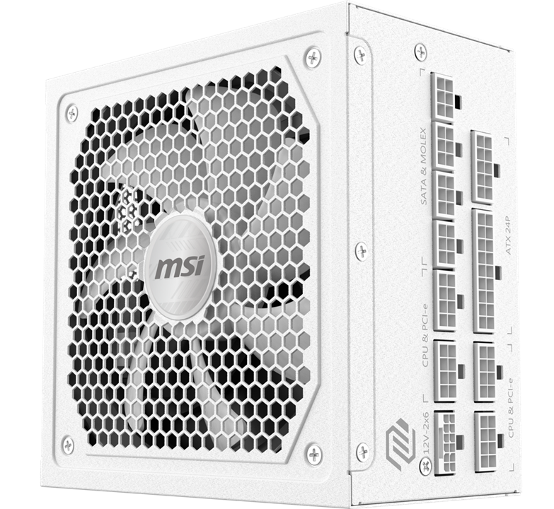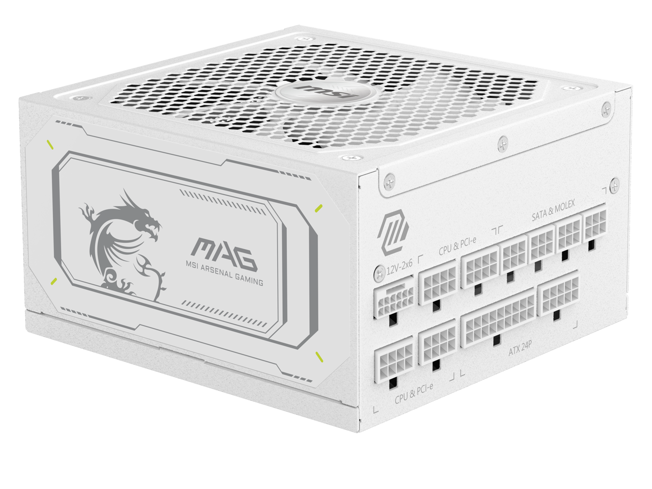 MSI MAG A1000GL PCIE5 WHITE ATX 1000W Fully Modular Power Supply - 80 PLUS Gold Certified - ATX 3.1 Compatible - 135mm FDB Fan - Full-bridge LLC - 1x PCIe 5.1 16-Pin Connector - 4x PCIe 6+2-Pin Connectors (MAGA1000GLPCIE5WT)