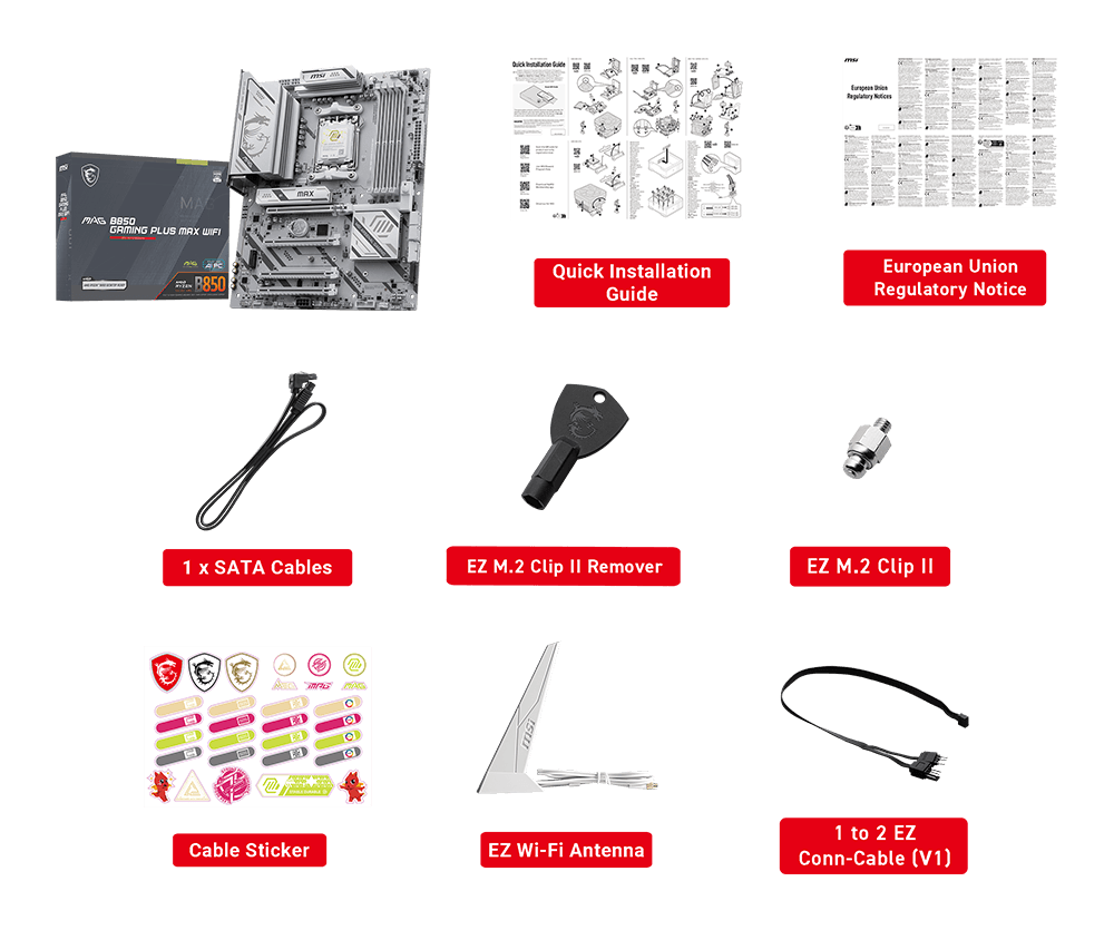 MSI MAG B850 GAMING PLUS MAX WIFI ATX Motherboard - Socket AM5 - 1x PCIe 5.0 x16 - 1x PCIe 4.0 x4 - Support DDR5-8200(OC) - 3x M.2 Slots - USB 10Gbps Type-C - DisplayPort 1.2 - Realtek 5Gb LAN - 802.11be 2x2 Wi-Fi 7 - Bluetooth 5.4 (MAGB850GPMW)