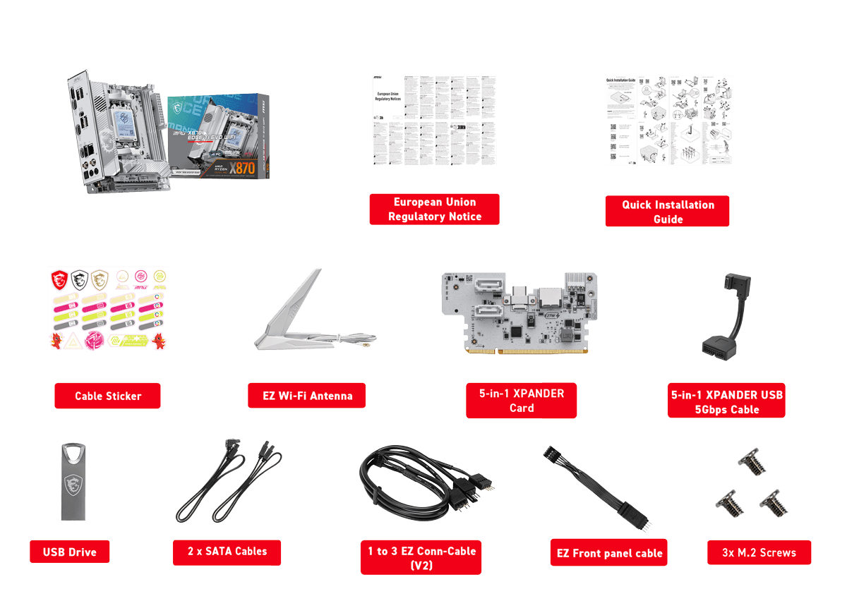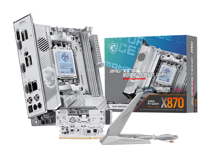 MSI MPG X870I EDGE TI EVO WIFI Mini-ITX Motherboard - Socket AM5 - 1x PCIe 5.0 x16 - Support DDR5-10000(OC) - 2x M.2 Slots - 2x USB4 Type-C (DP Alt mode) - HDMI 2.1 - 5Gb LAN - 802.11be Wi-Fi 7 - Bluetooth 5.4 - 5-in-1 XPANDER Card (MPGX870IEDGETI)