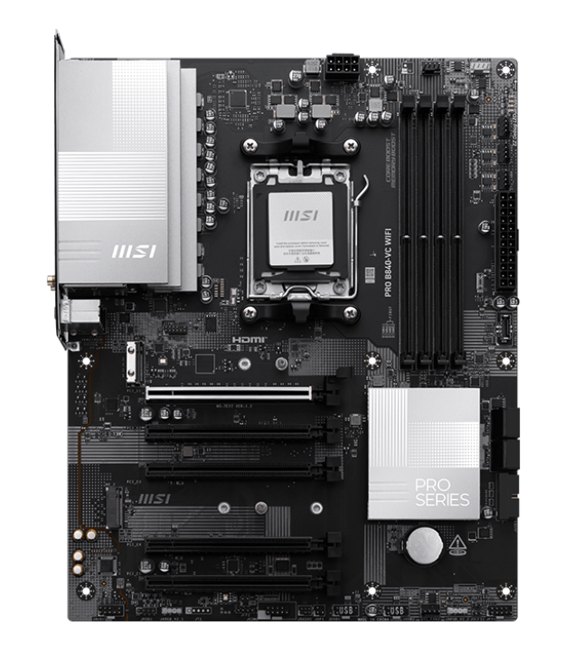 MSI PRO B840-VC WIFI ATX Motherboard - Socket AM5 - 1x PCIe 4.0 x16 - 3x PCIe 3.0 x1 - Support DDR5-8000(OC) - 2x M.2 Slots - USB 10Gbps Type-C+A - HDMI 2.1 - Realtek 2.5Gb LAN - 802.11be Wi-Fi 7 - Bluetooth 5.4 (PROB840VCWIFI)